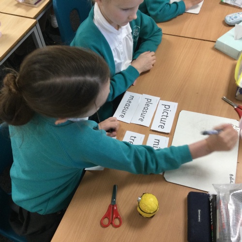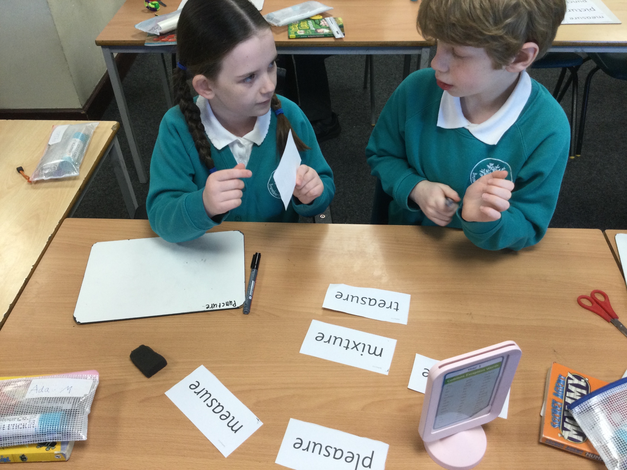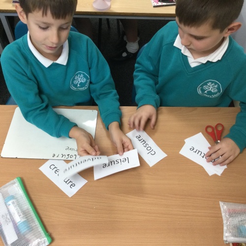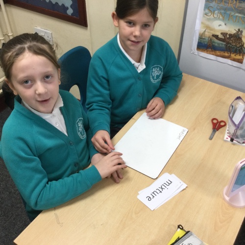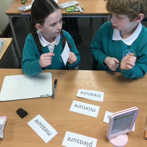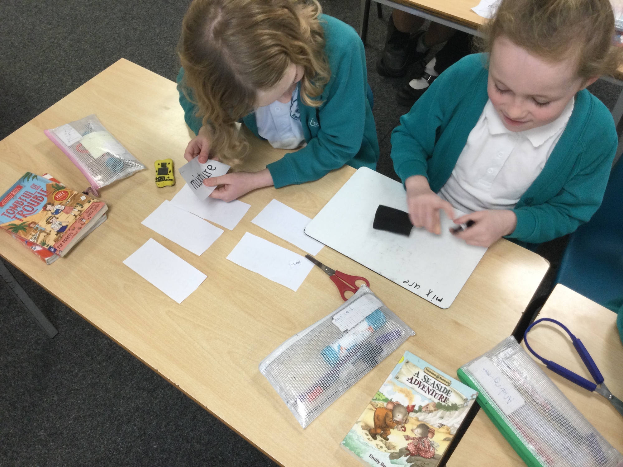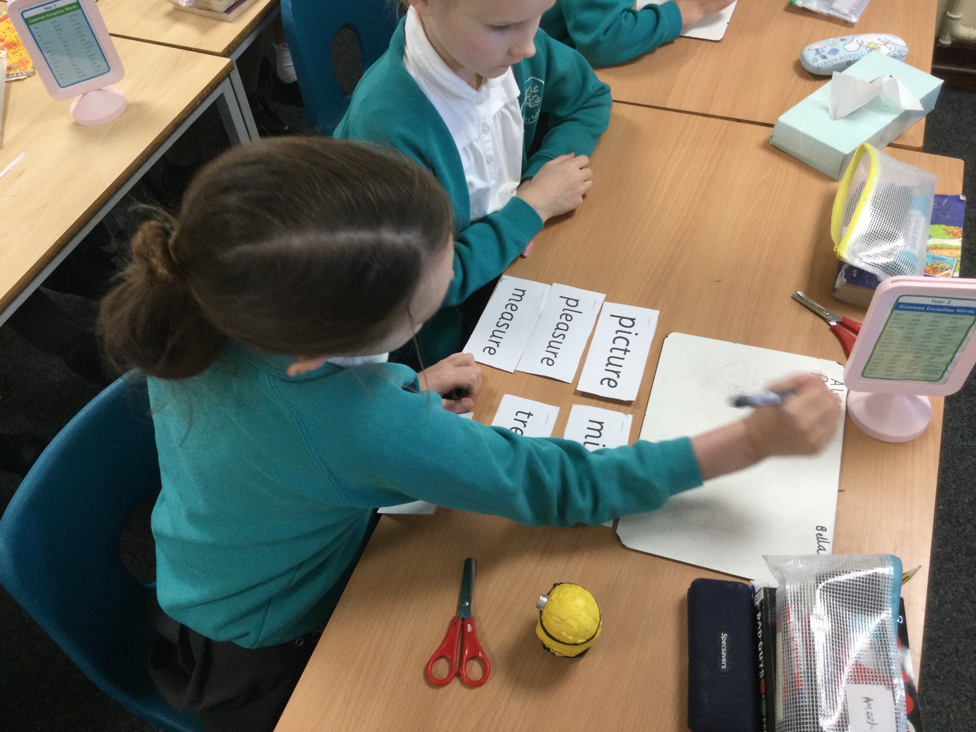 This week we practised one of our RWI spelling activities - Team Teach. Children worked in pairs and were given a word bank of our Unit 2 spellings. They decided, through discussion, how to sort these words from easiest to spell to hardest to spell. They then practised these spellings on their whiteboard and checked their work.