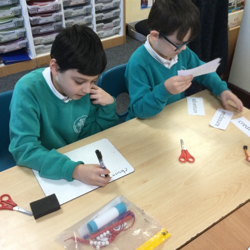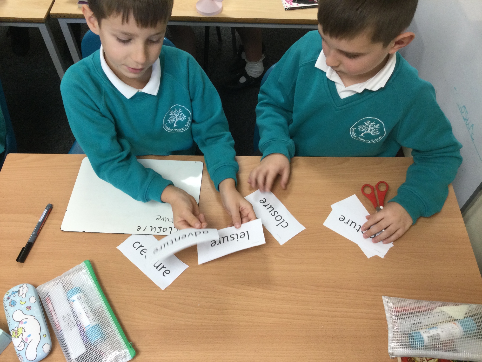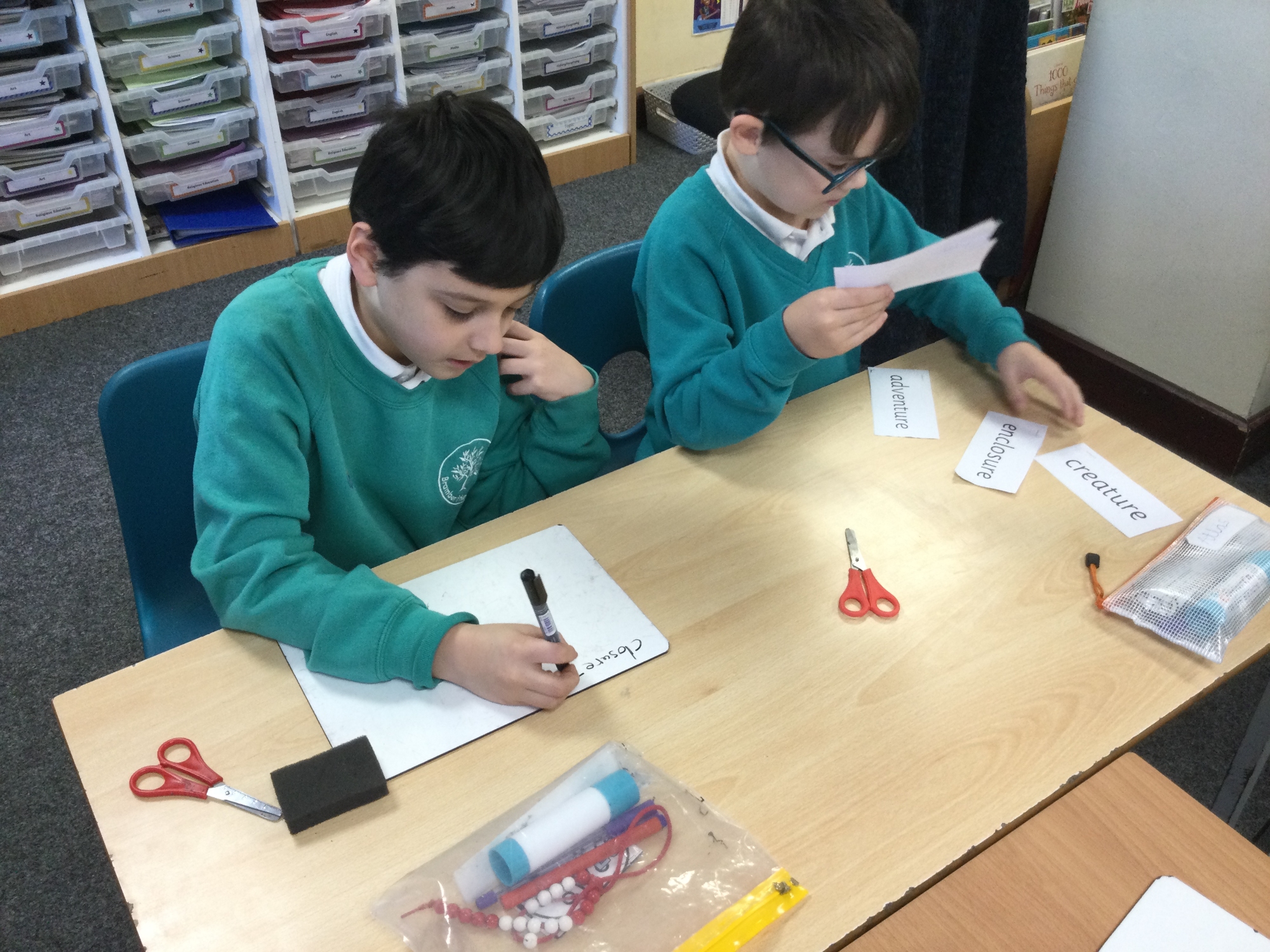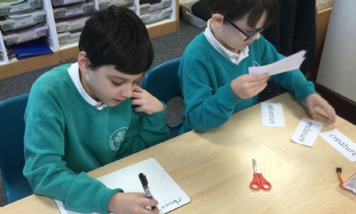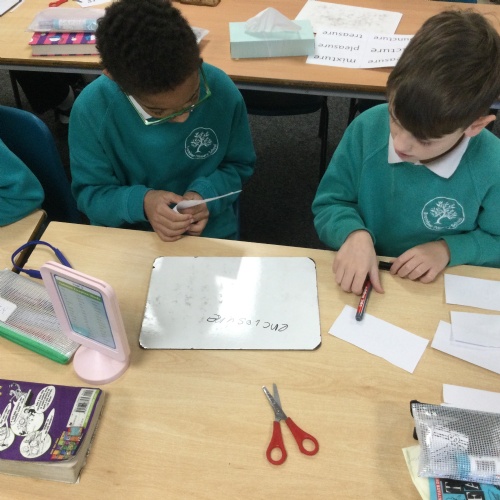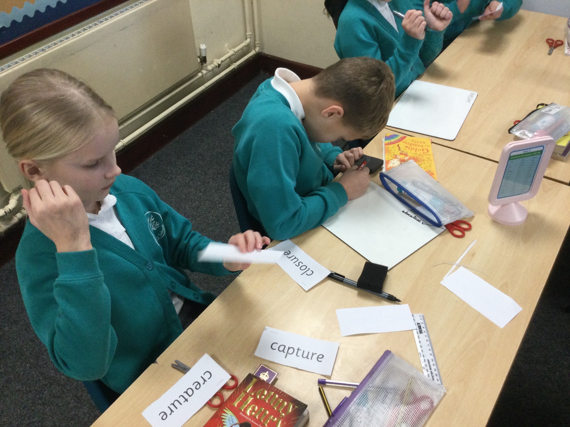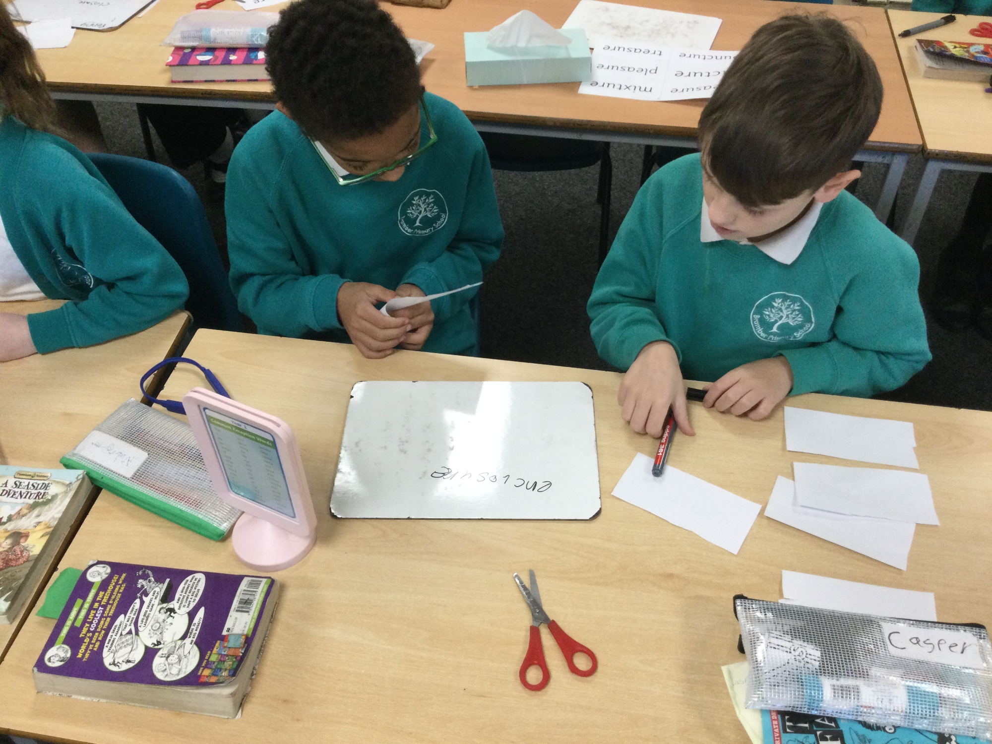 This week we practised one of our RWI spelling activities - Team Teach. Children worked in pairs and were given a word bank of our Unit 2 spellings. They decided, through discussion, how to sort these words from easiest to spell to hardest to spell. They then practised these spellings on their whiteboard and checked their work.