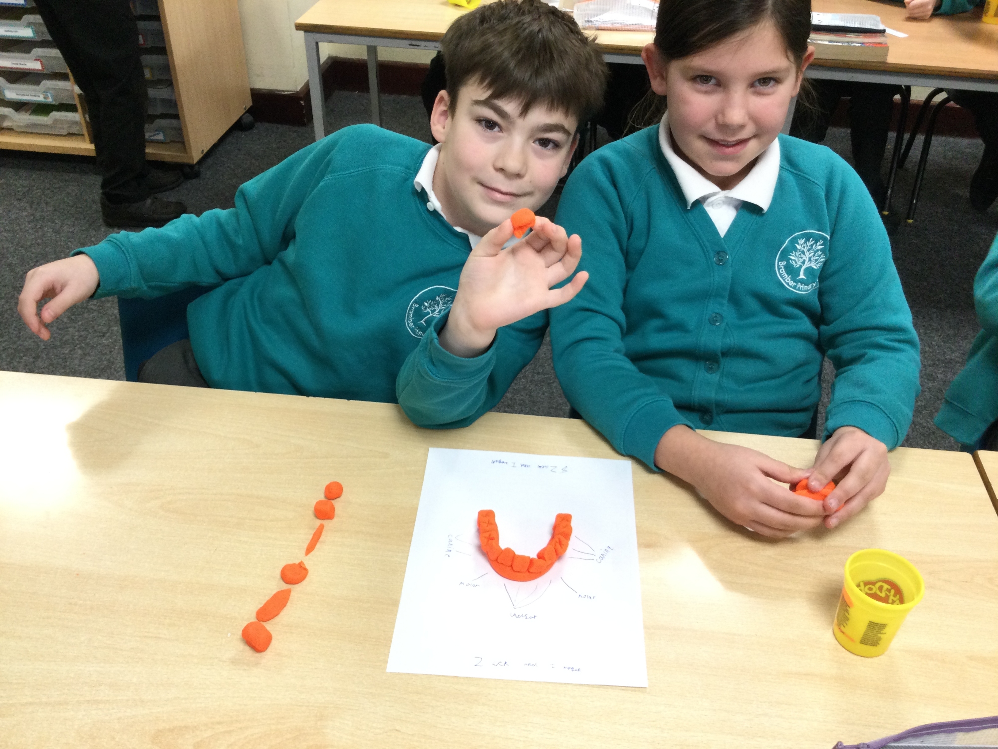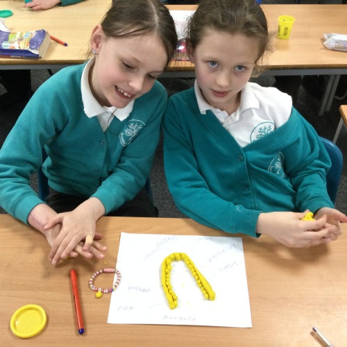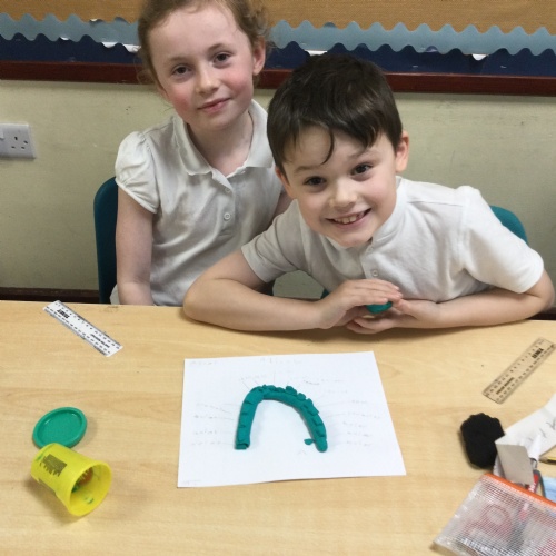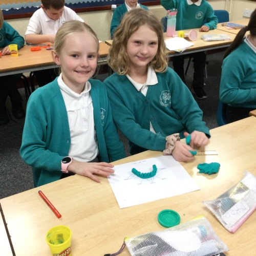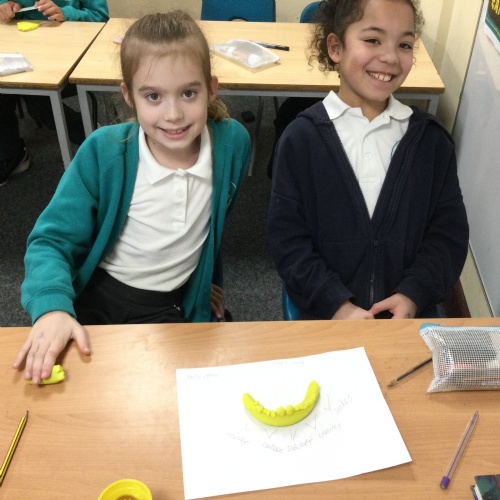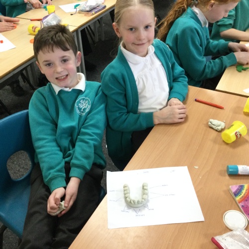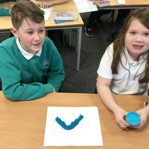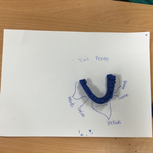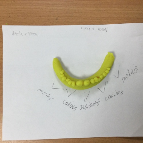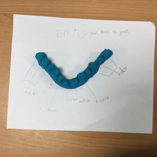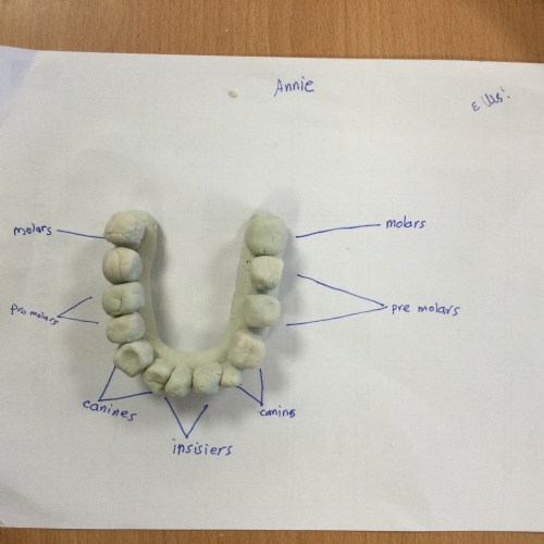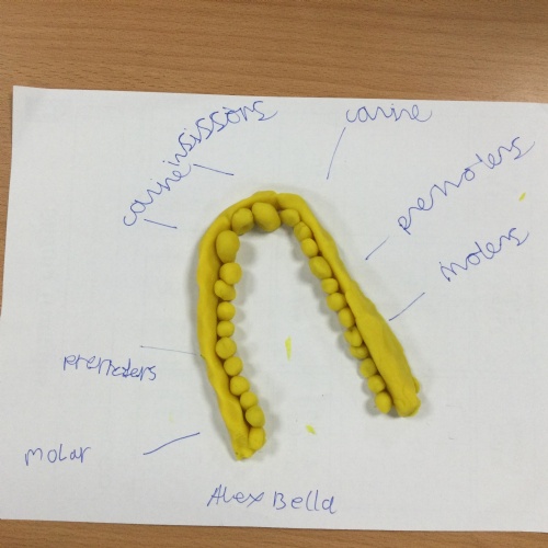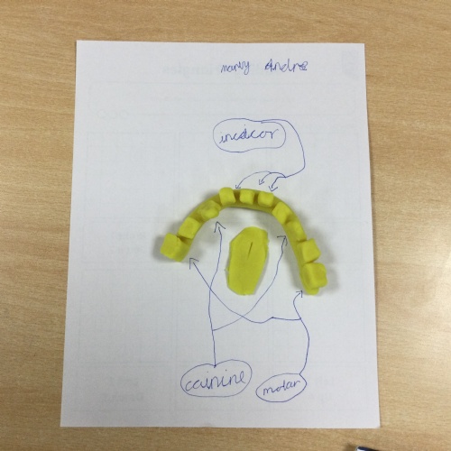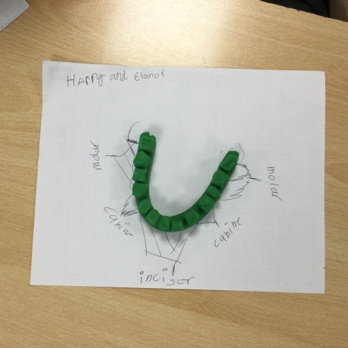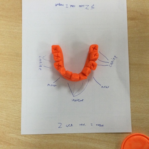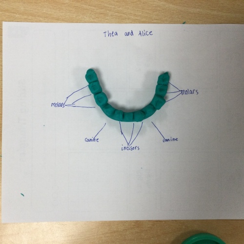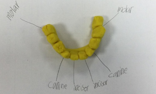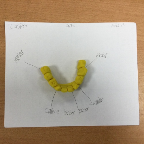 In this session, the class learned about the different types of teeth and made models using play-doh. They began to learn about the functions of each type and the differences in teeth in herbivores and carnivores.