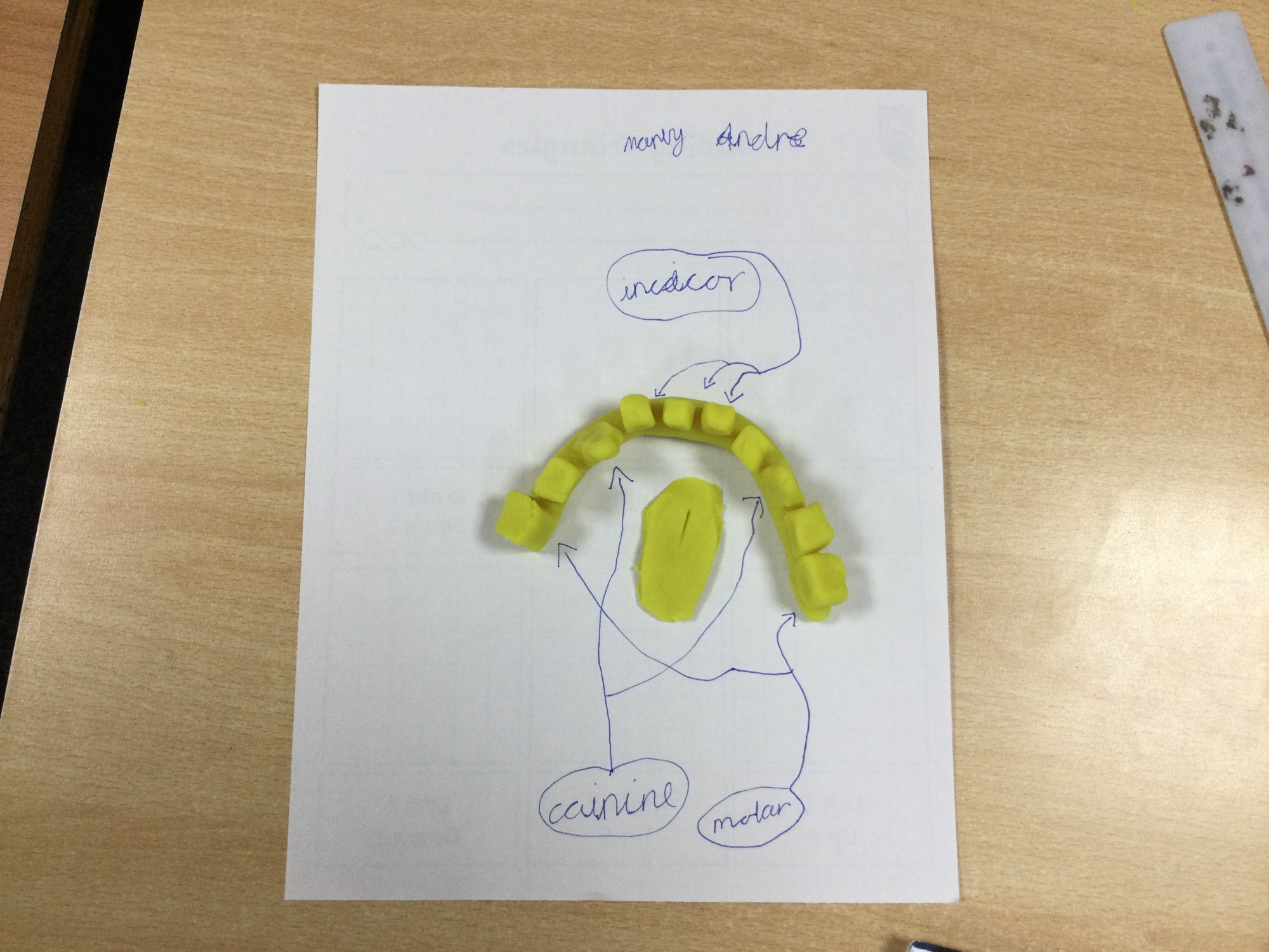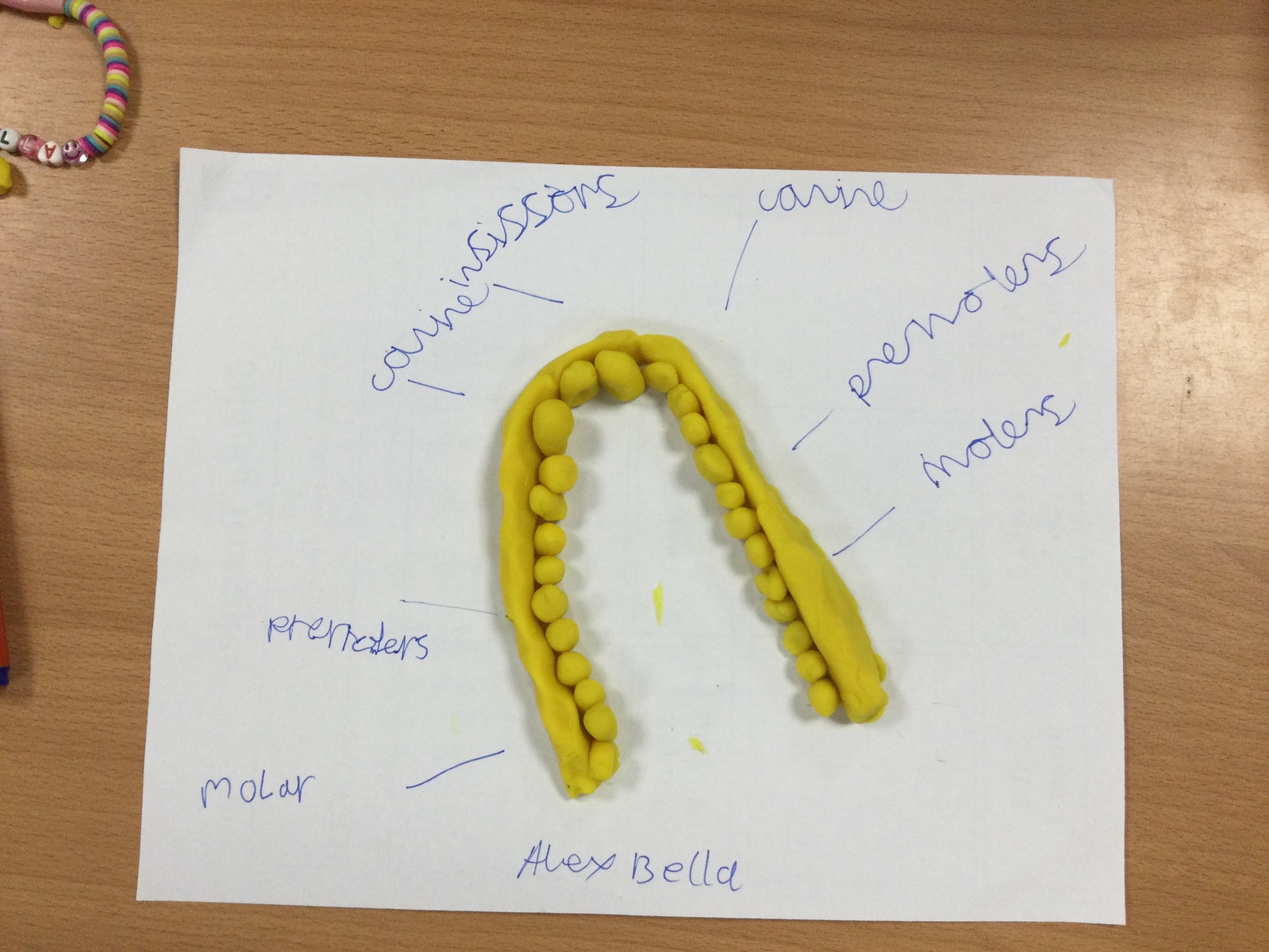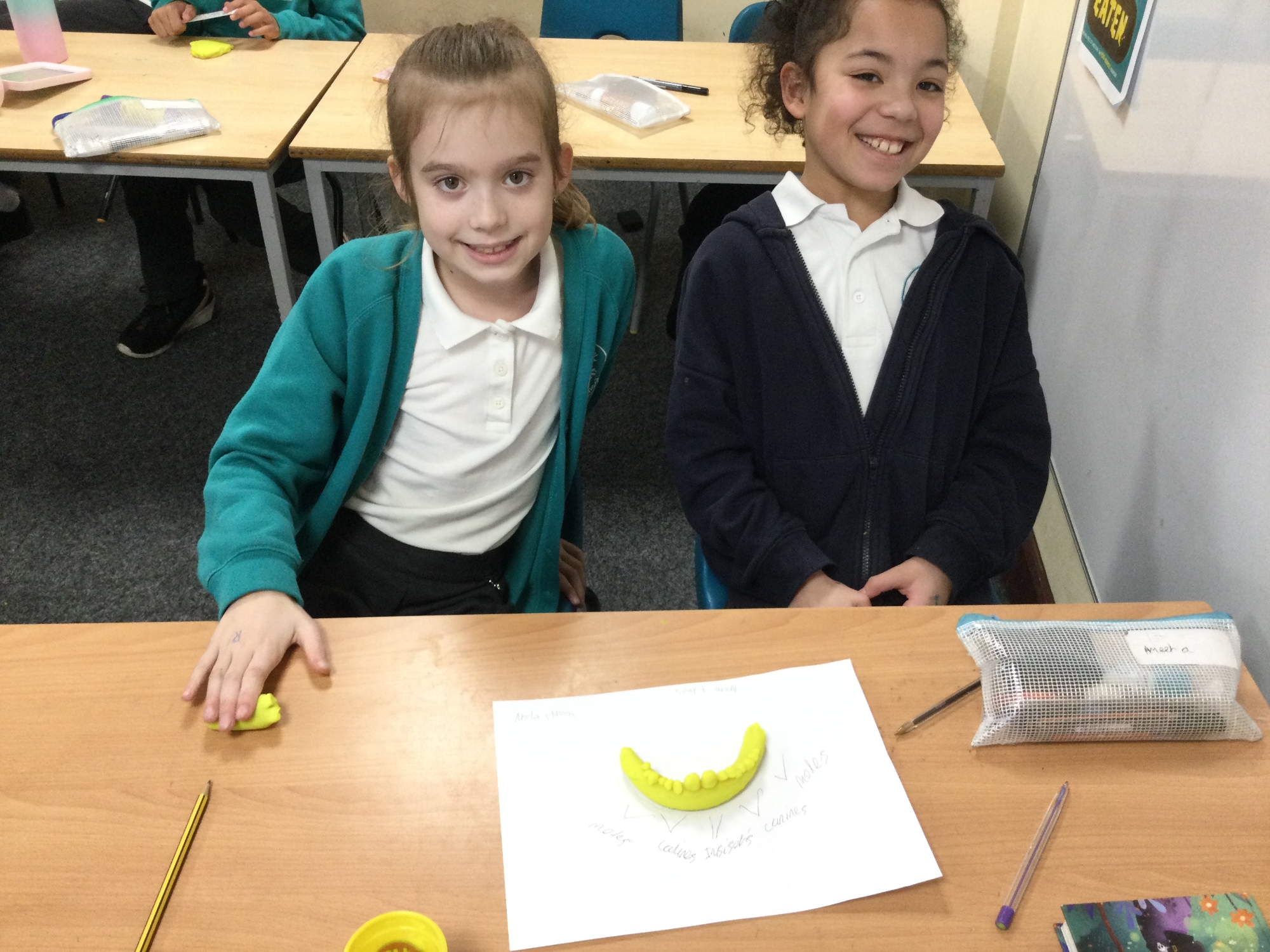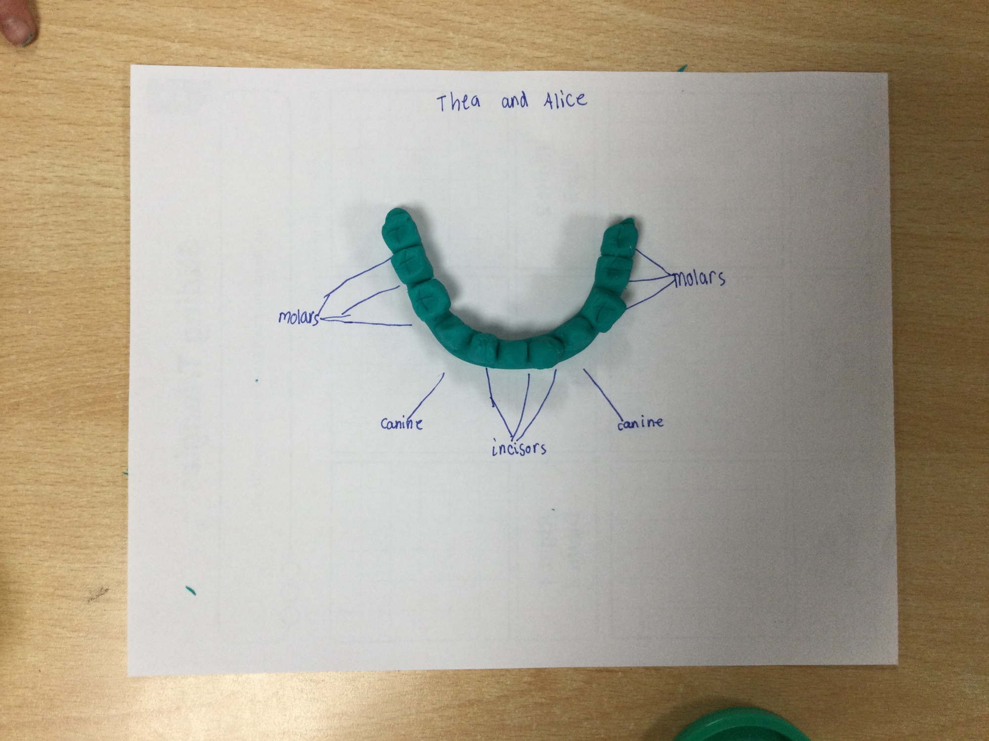 In this session, the class learned about the different types of teeth and made models using play-doh. They began to learn about the functions of each type and the differences in teeth in herbivores and carnivores.