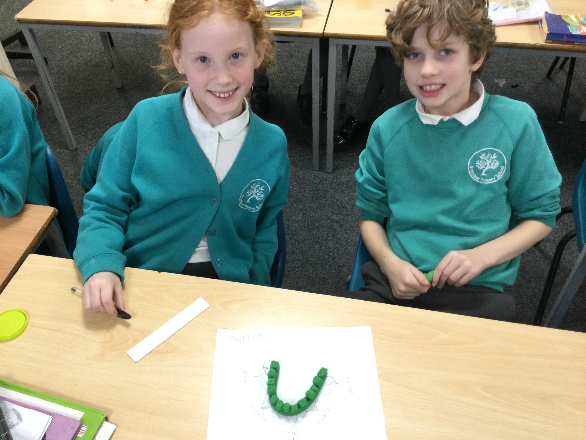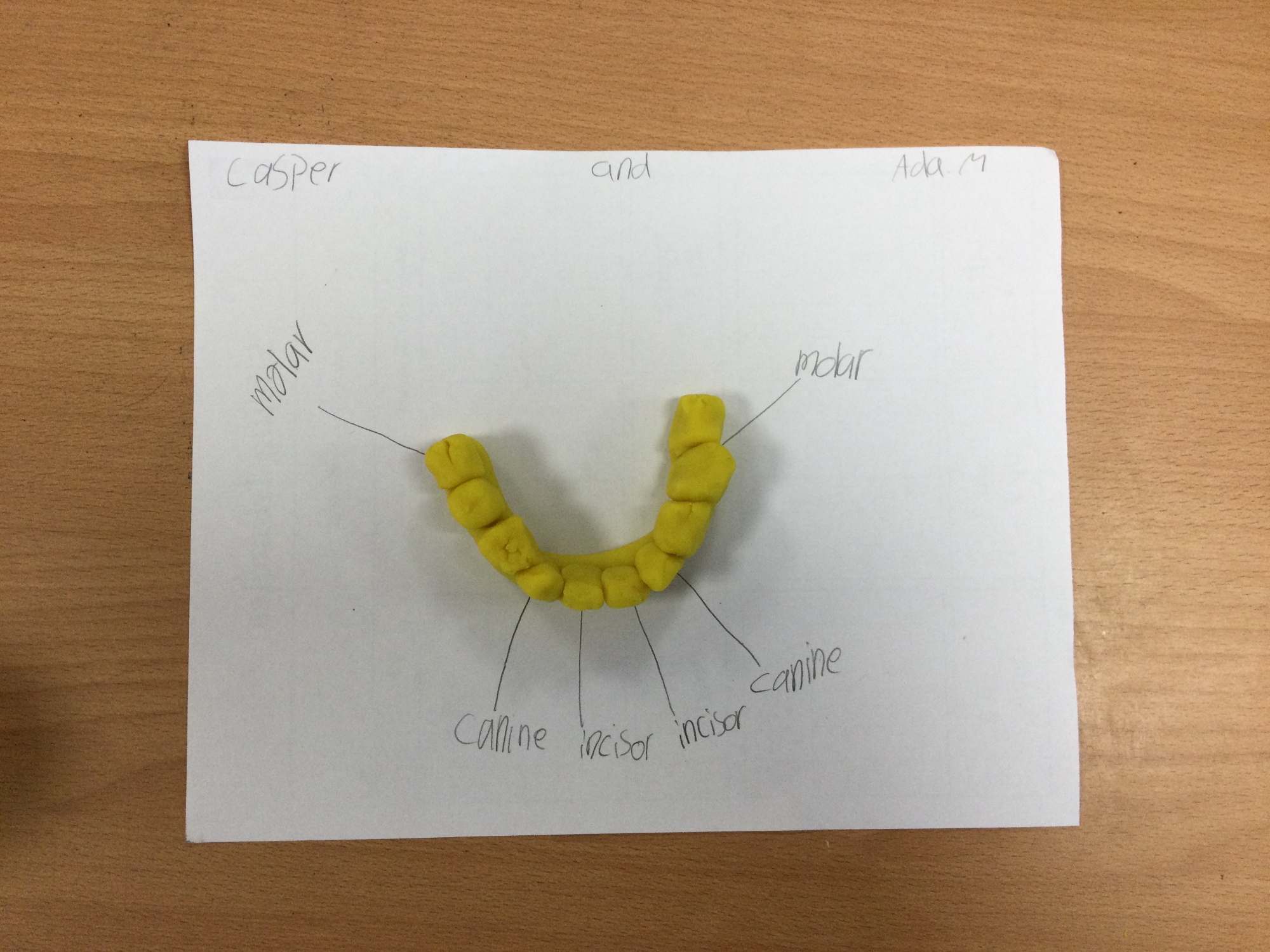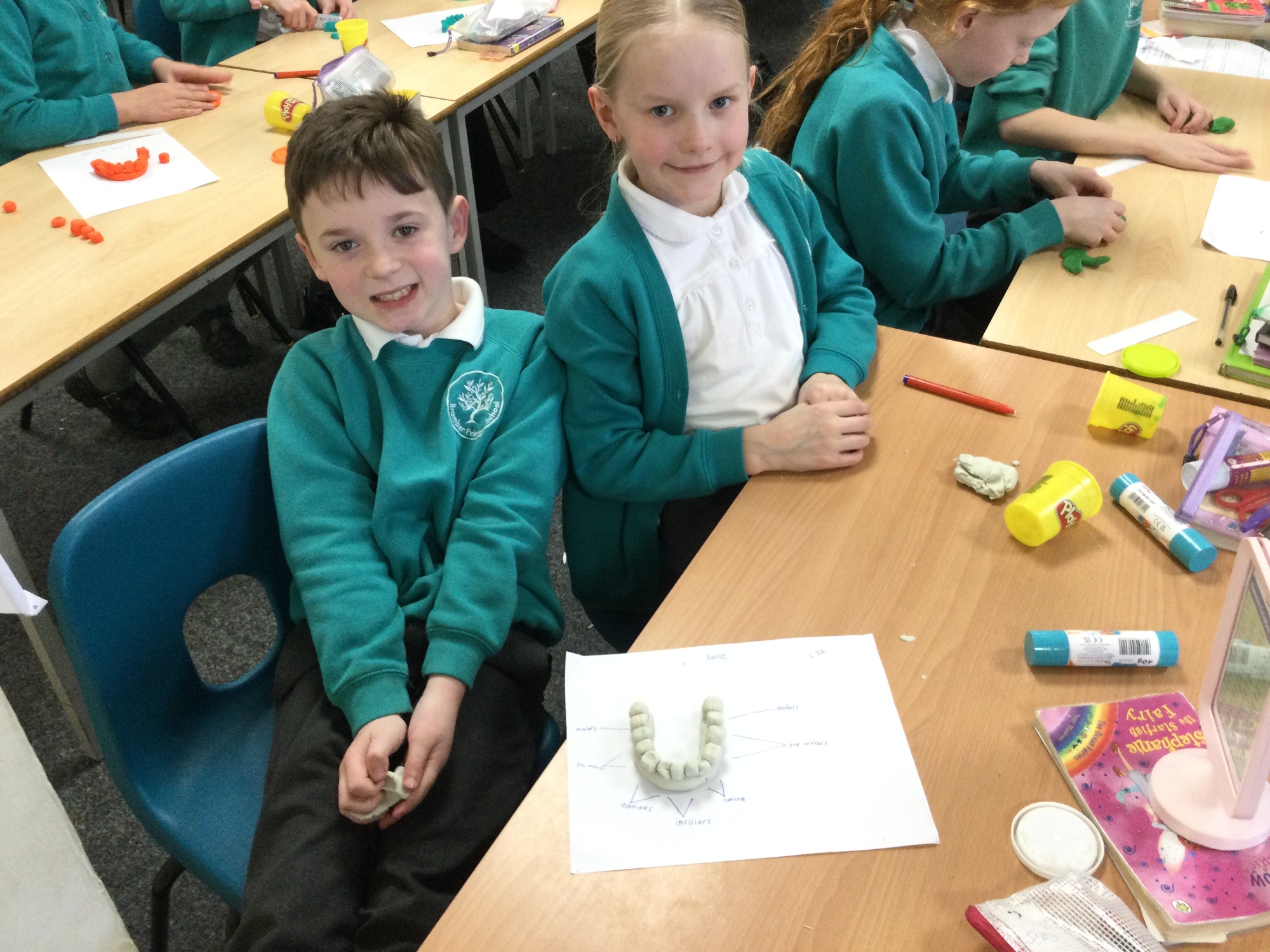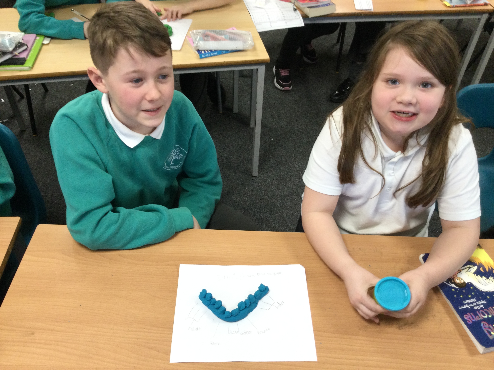In this session, the class learned about the different types of teeth and made models using play-doh. They began to learn about the functions of each type and the differences in teeth in herbivores and carnivores.