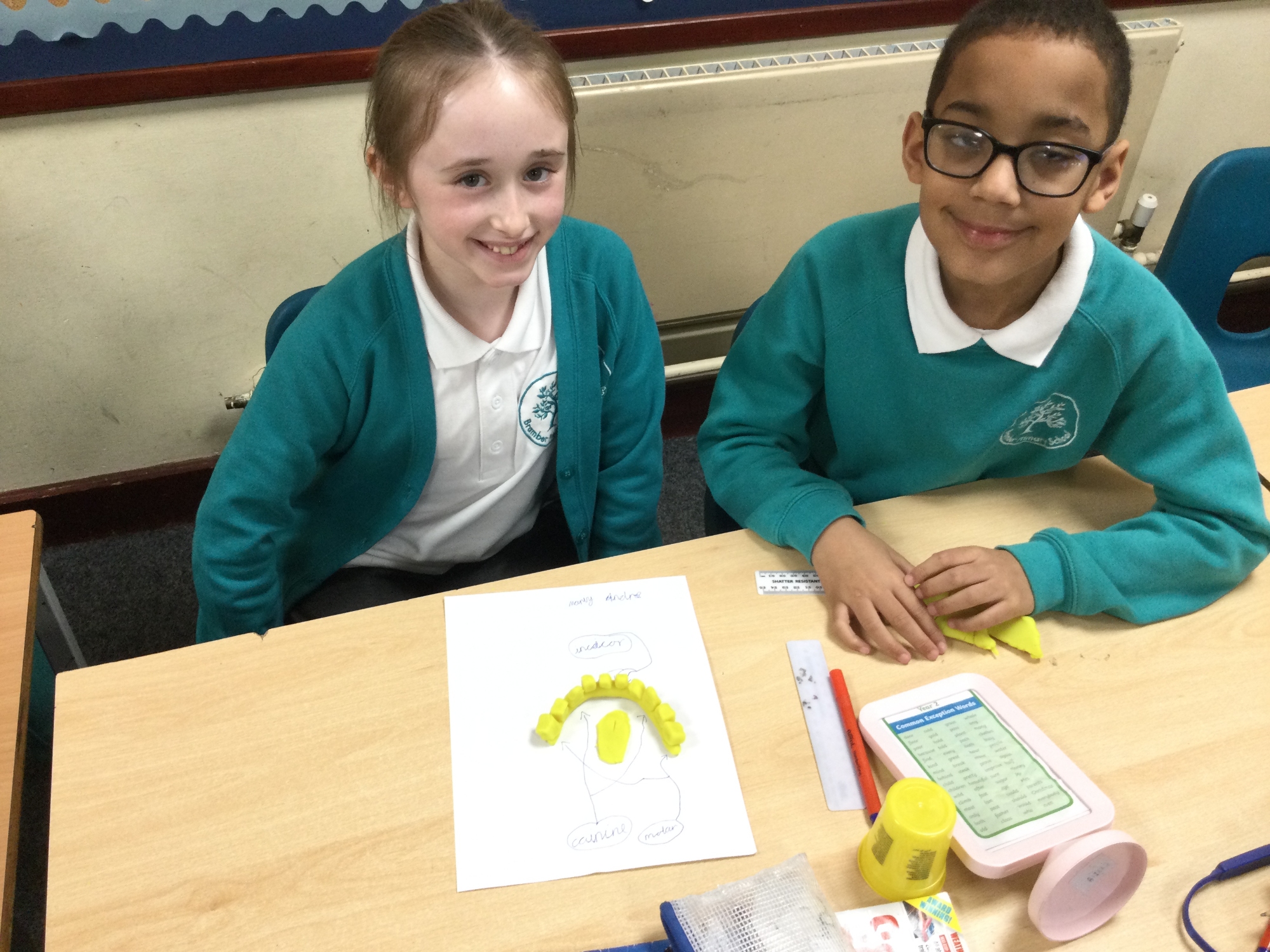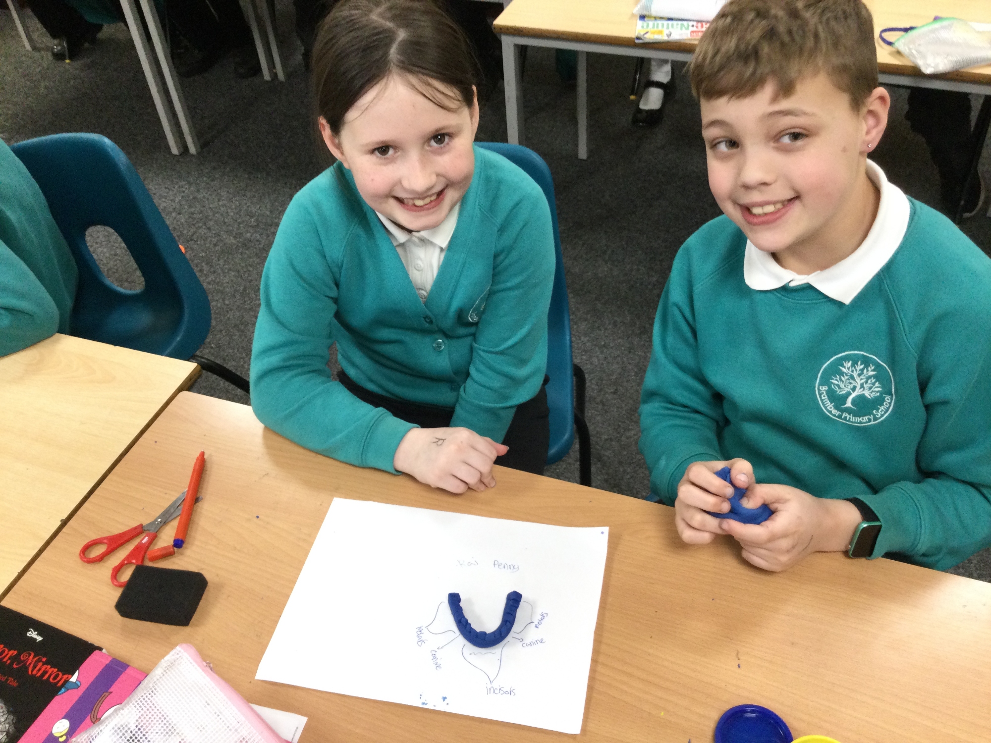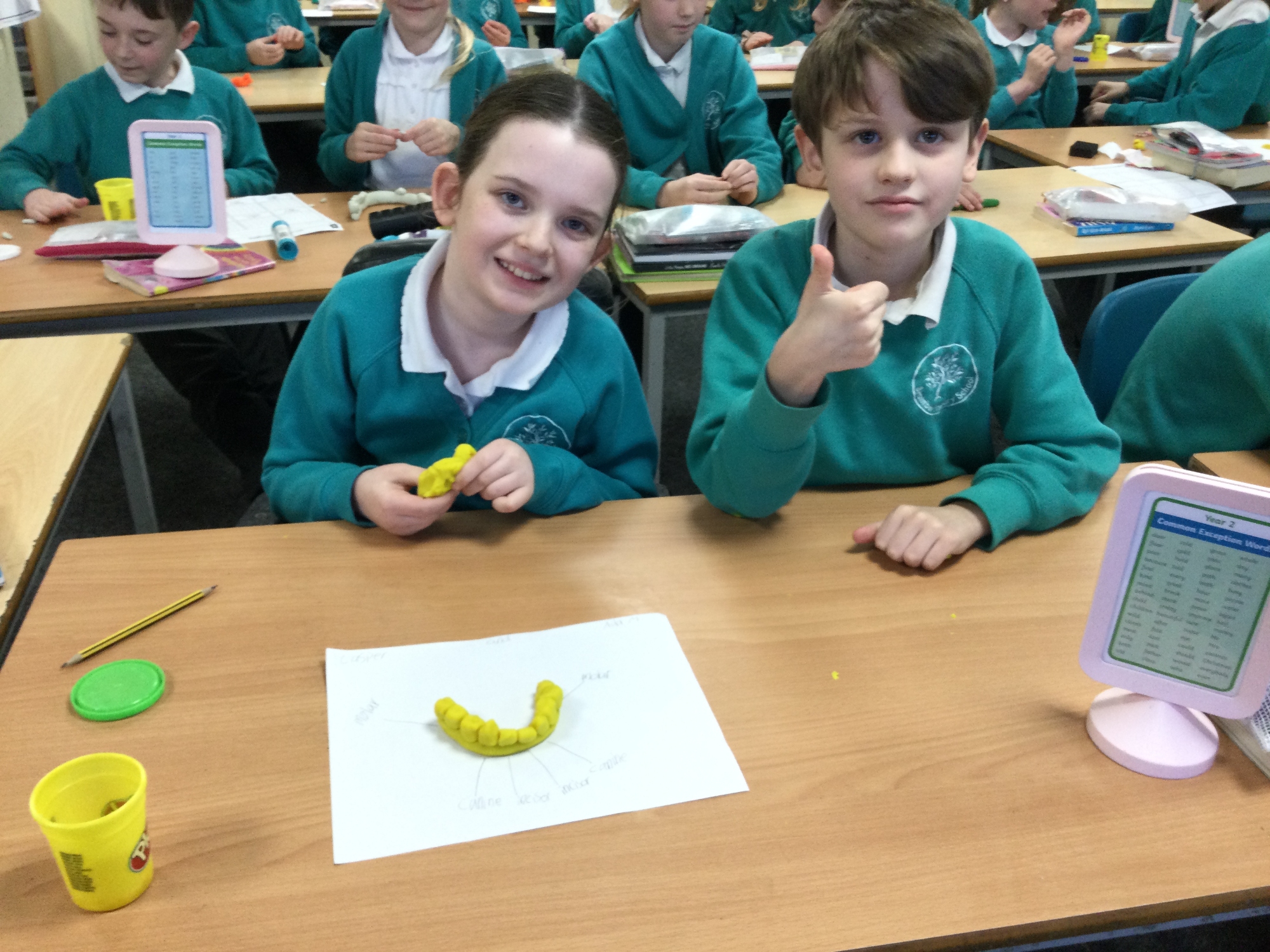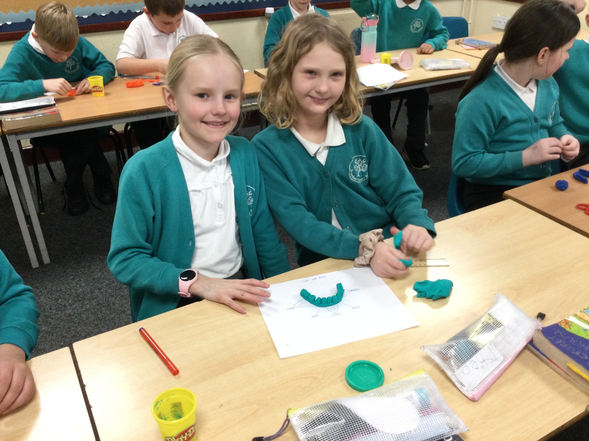 In this session, the class learned about the different types of teeth and made models using play-doh. They began to learn about the functions of each type and the differences in teeth in herbivores and carnivores.