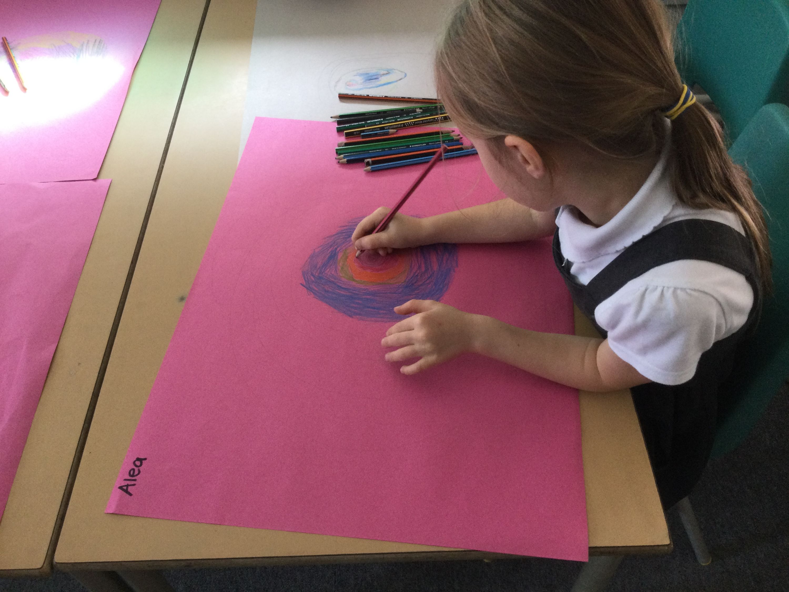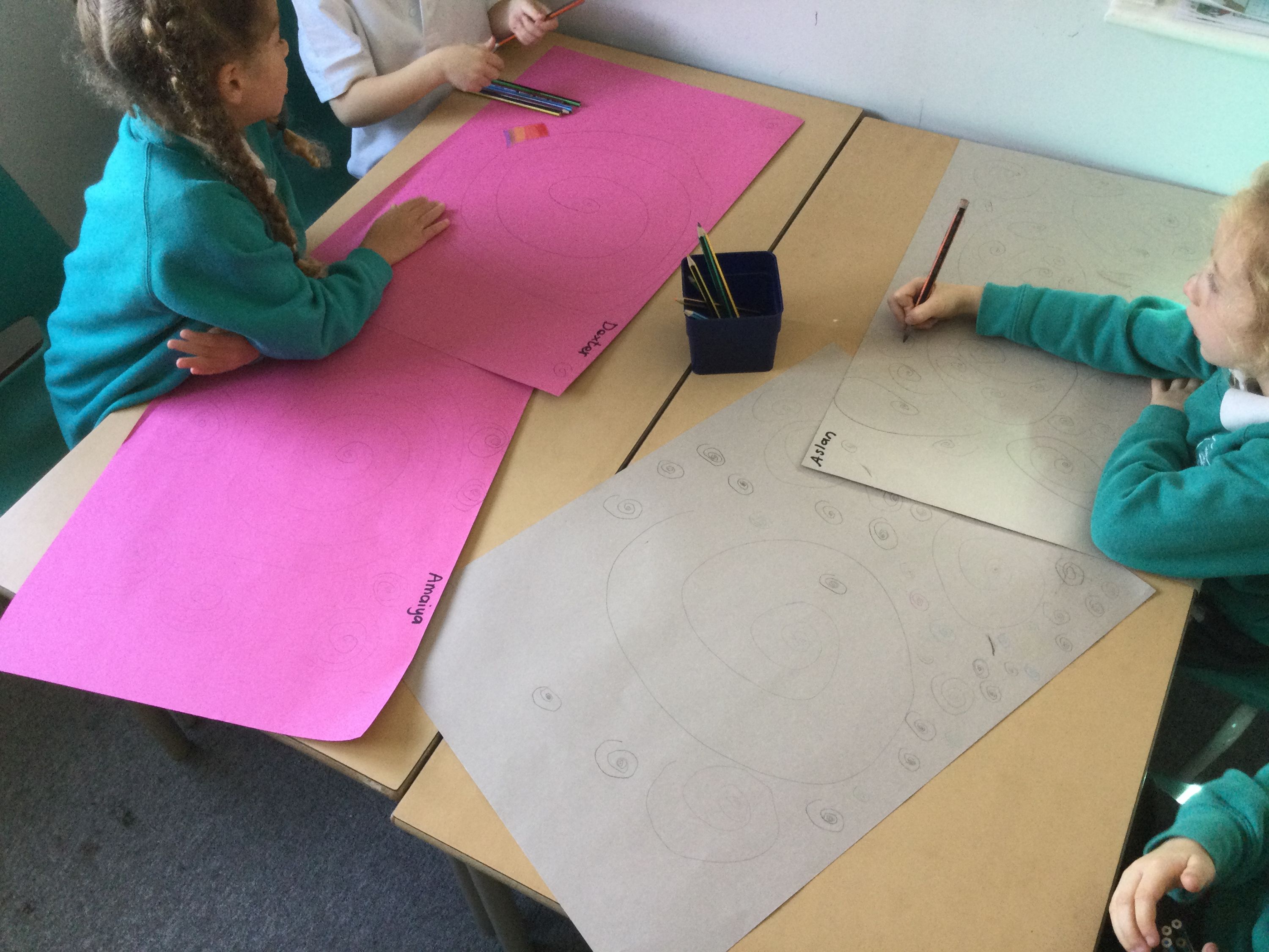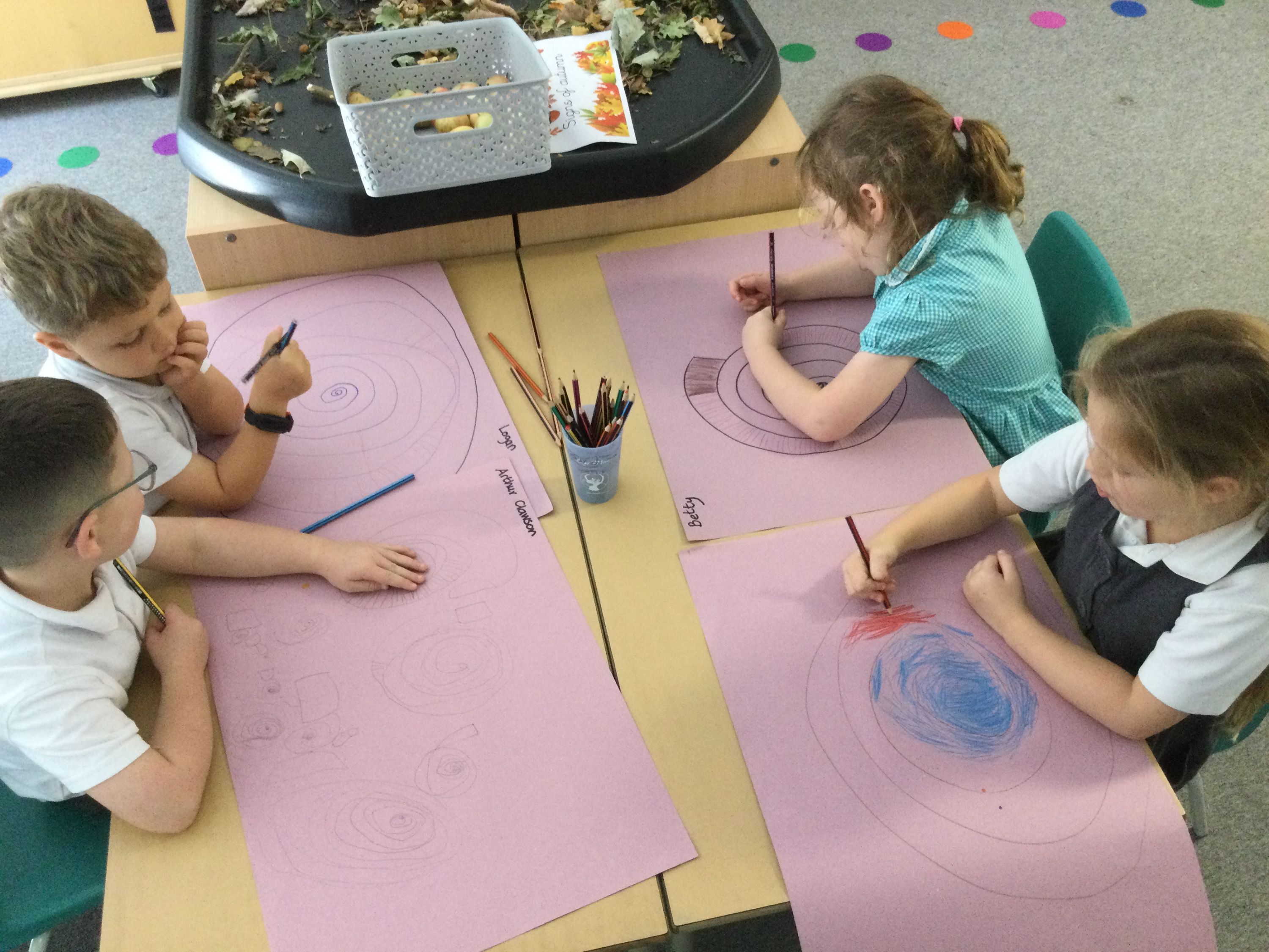 Robins have started to explore spirals as part of the Year 1 art curriculum.