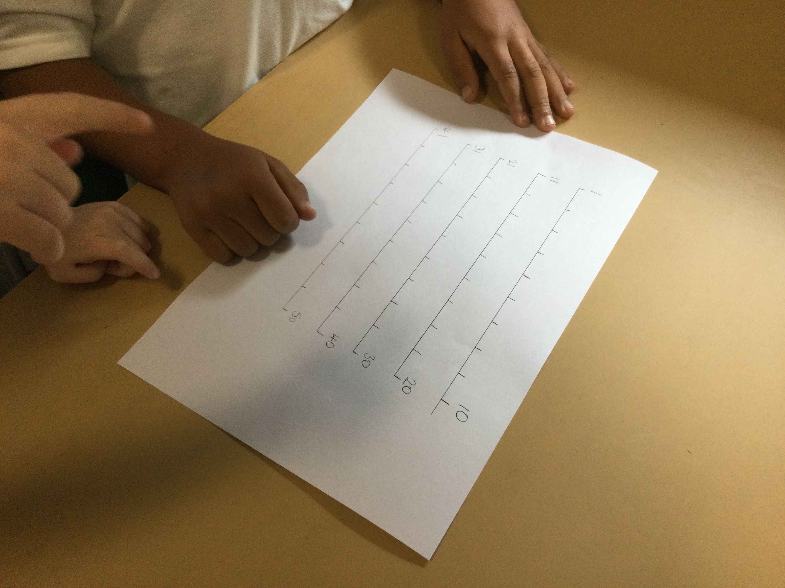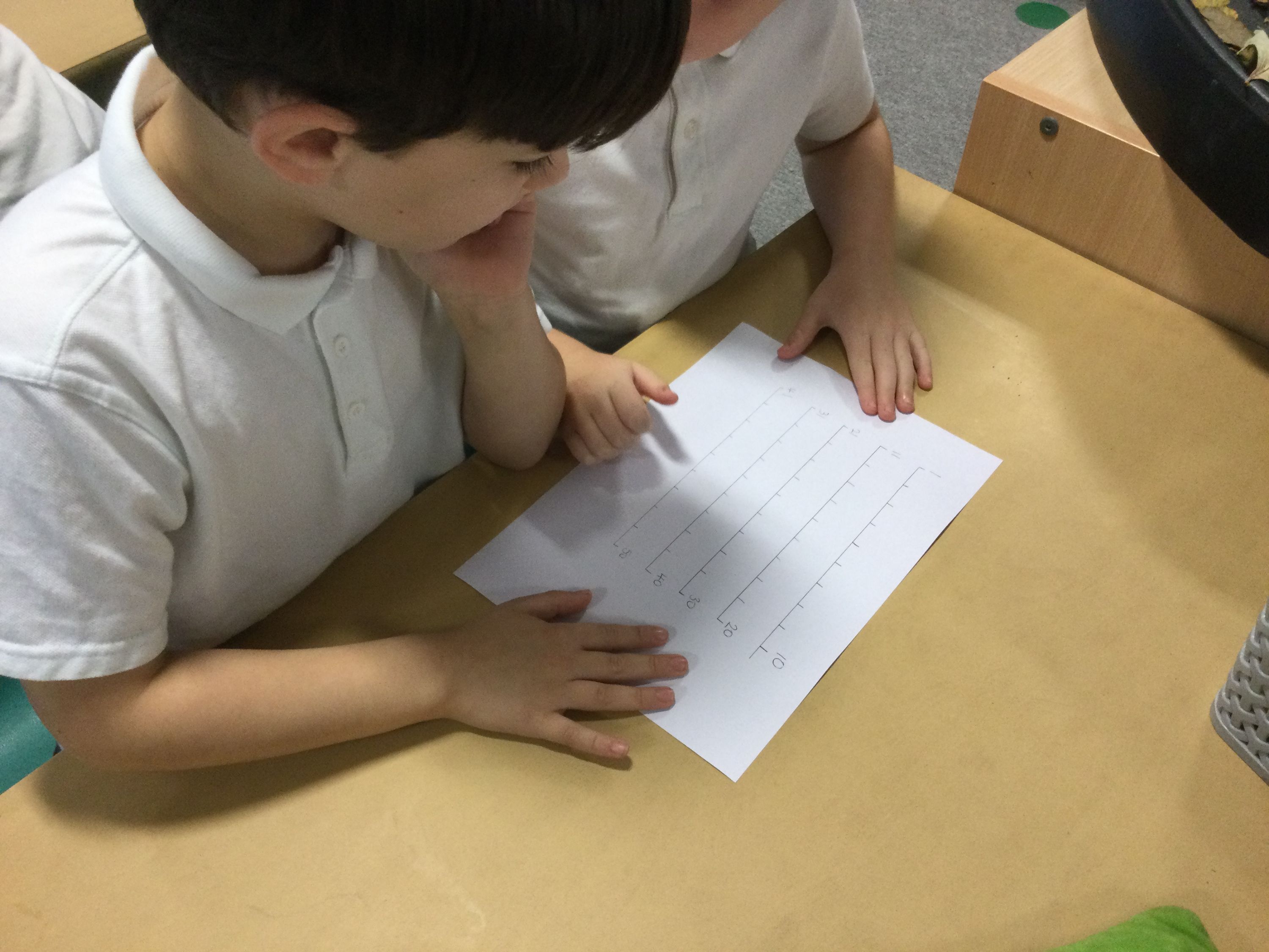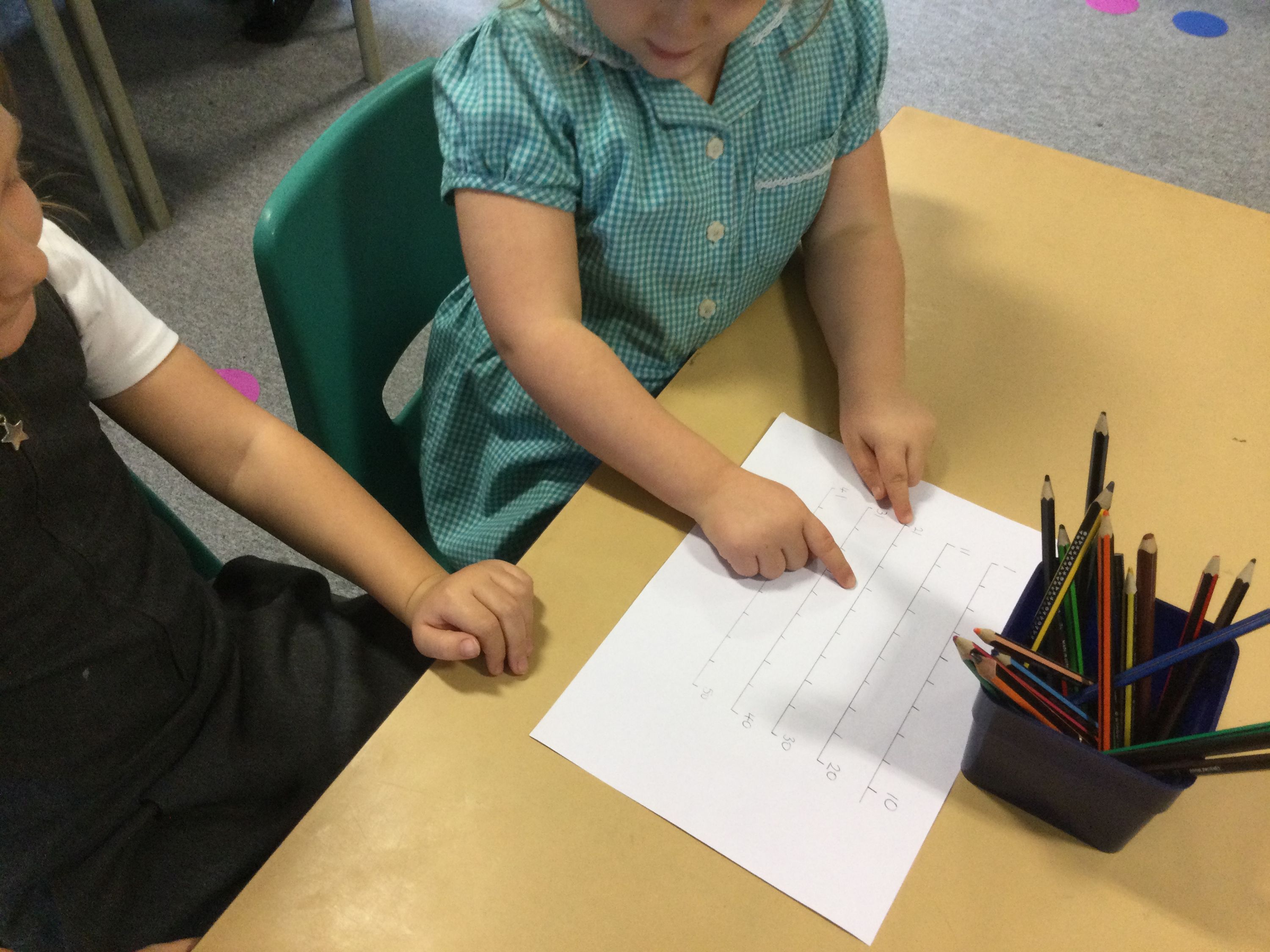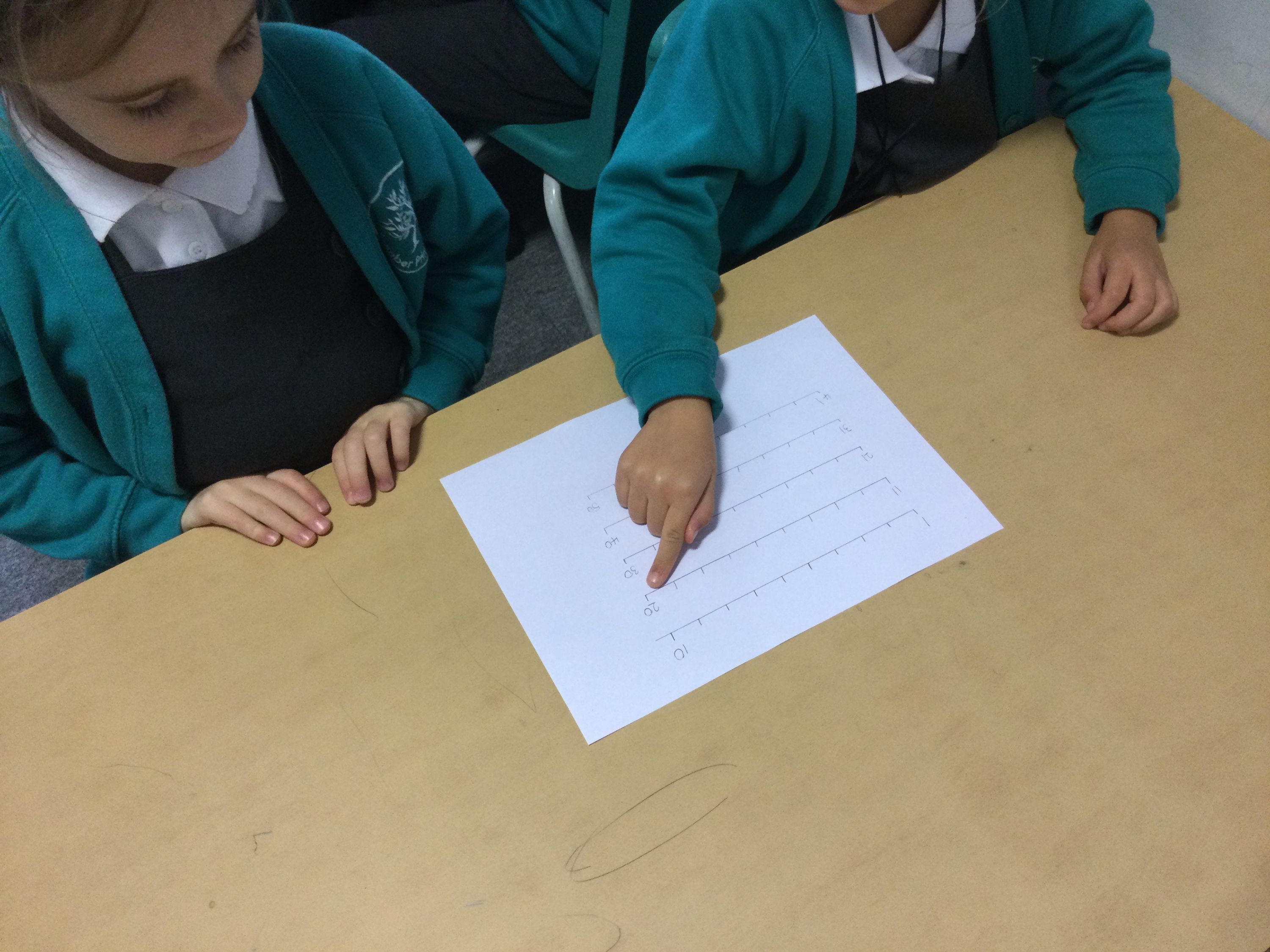 The children have been counting, focusing on the numbers that come before multiples of 10. Here they are practising with each other.