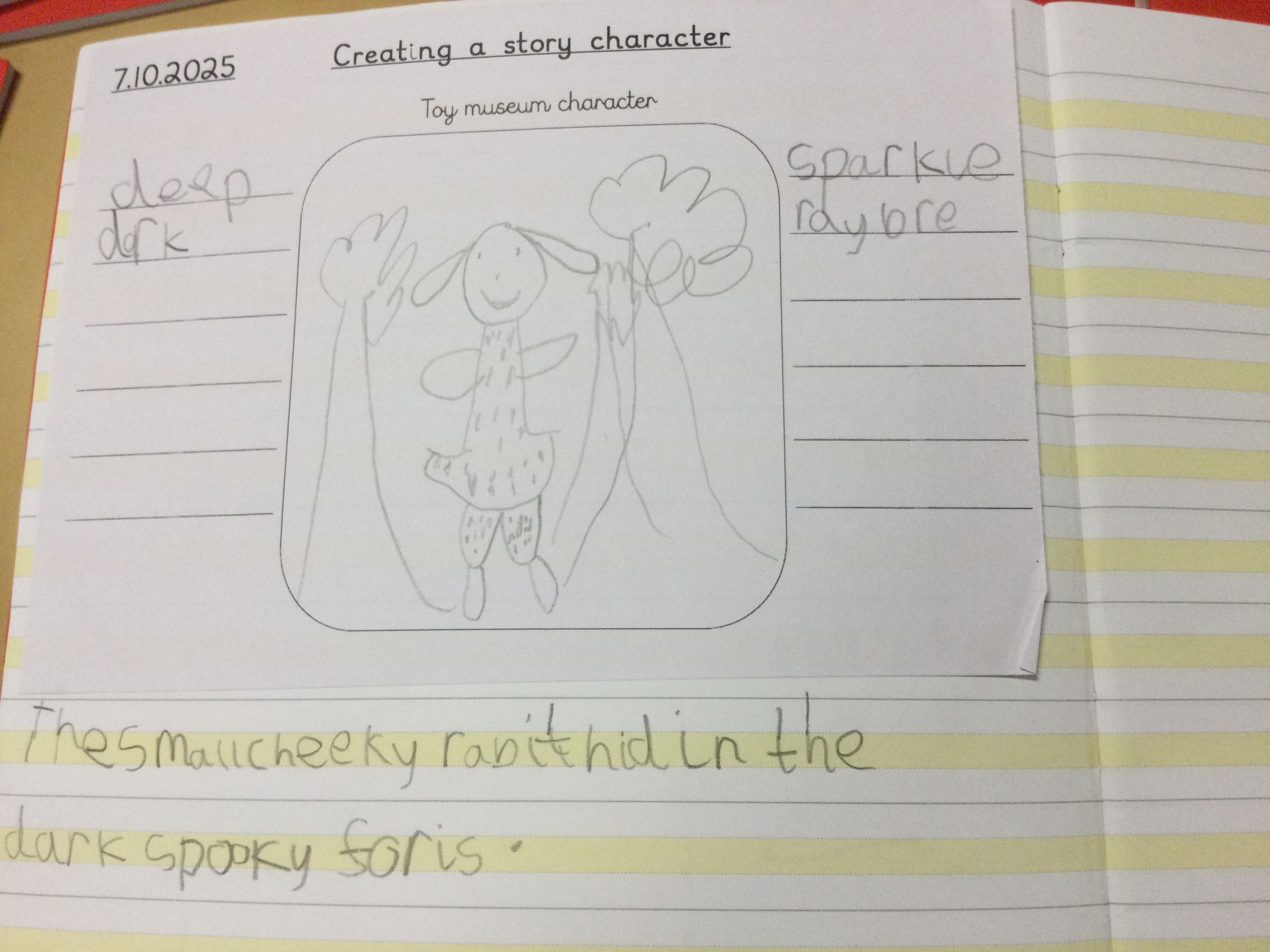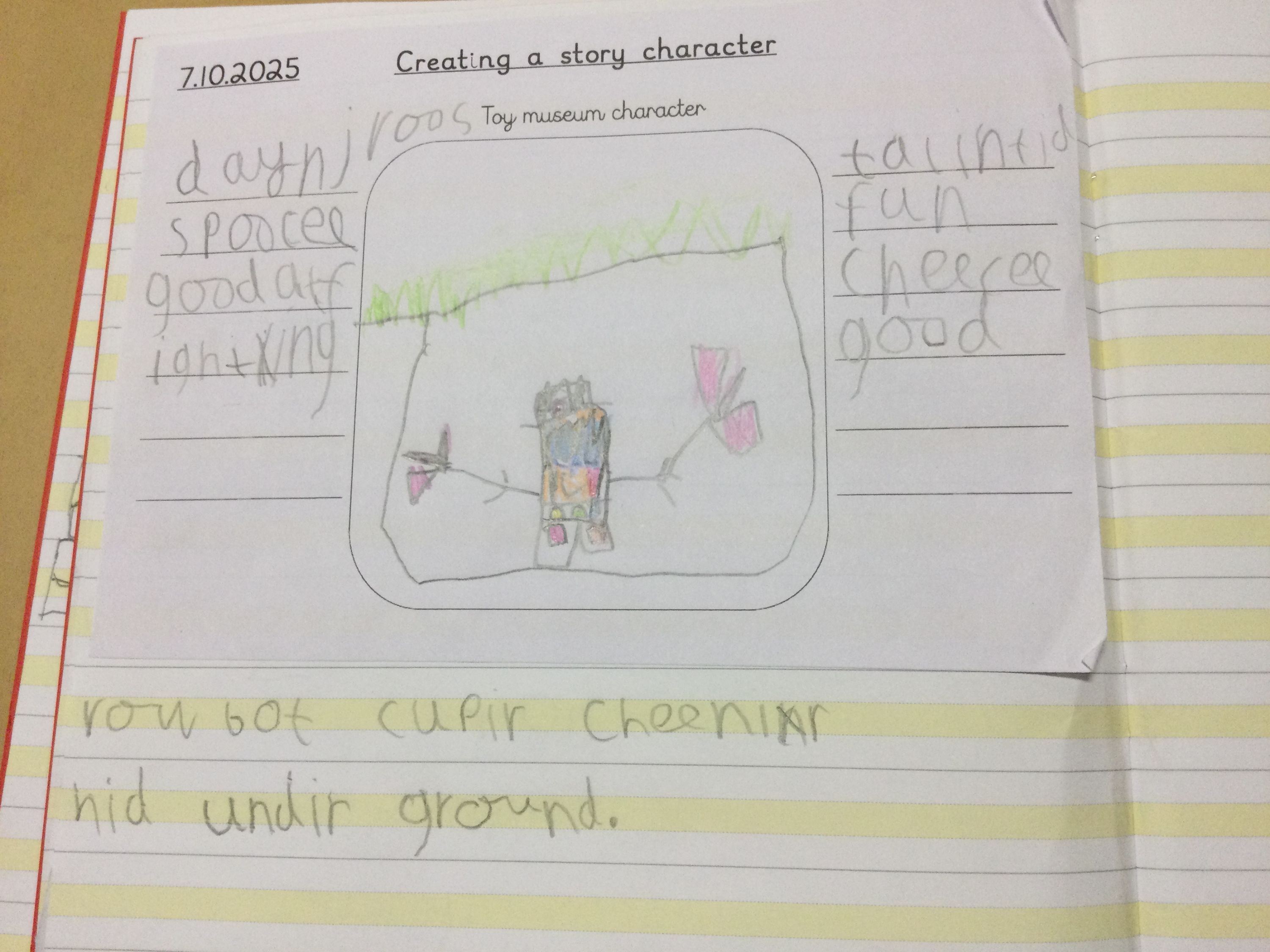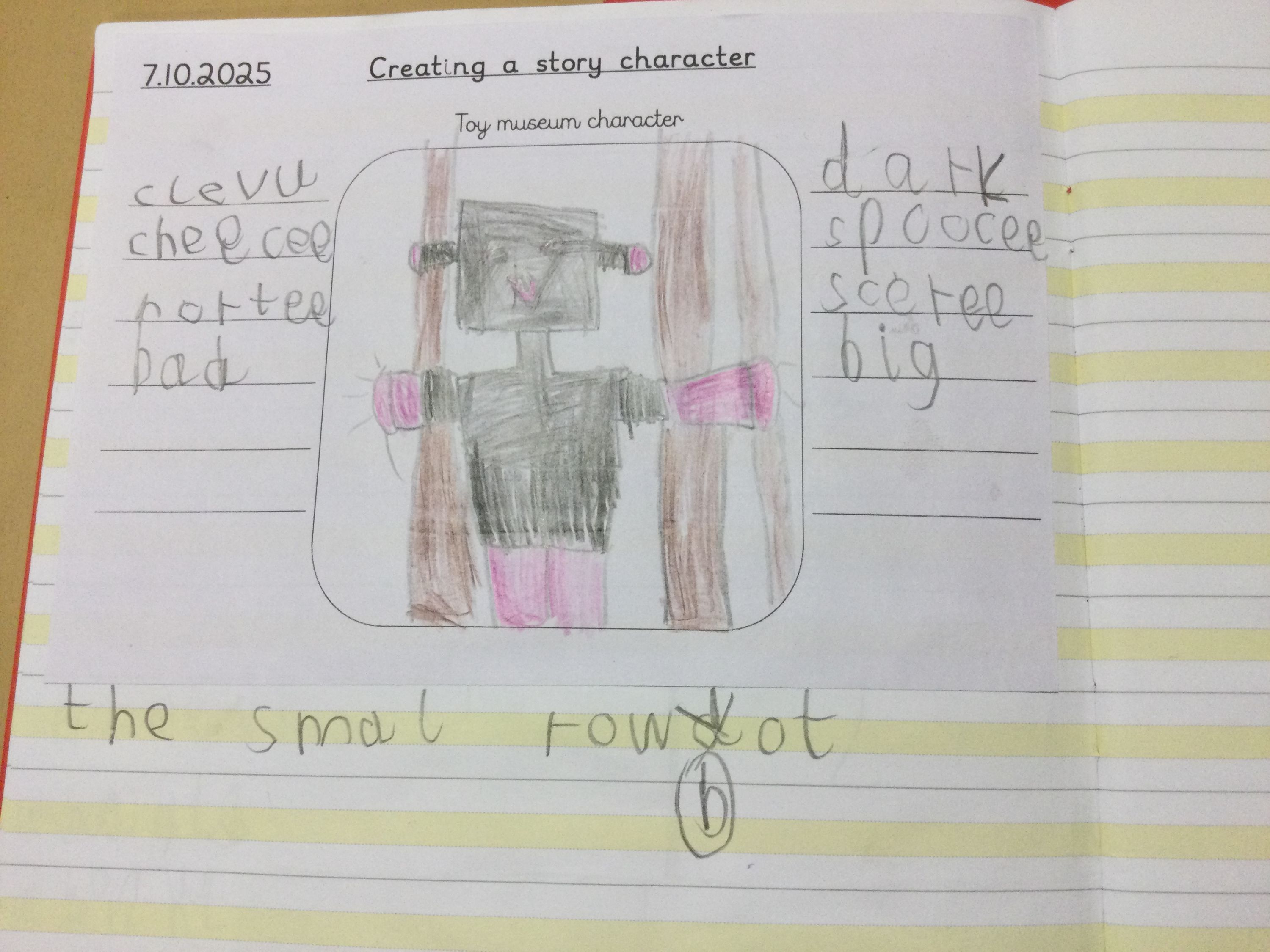Robins have begun to create their own character for the story 'Lost in the Toy Museum'. We chose adjectives to suit the characters.