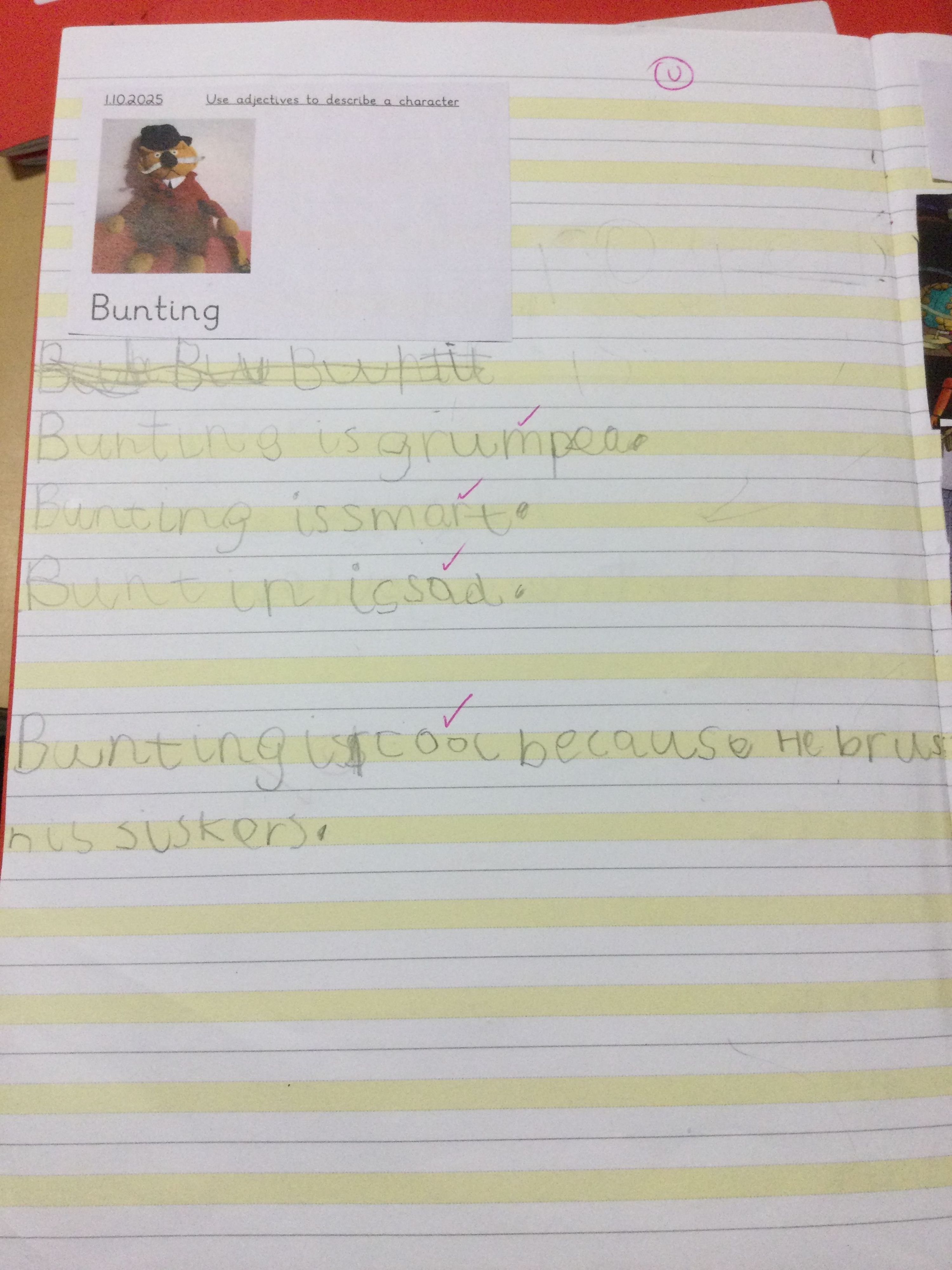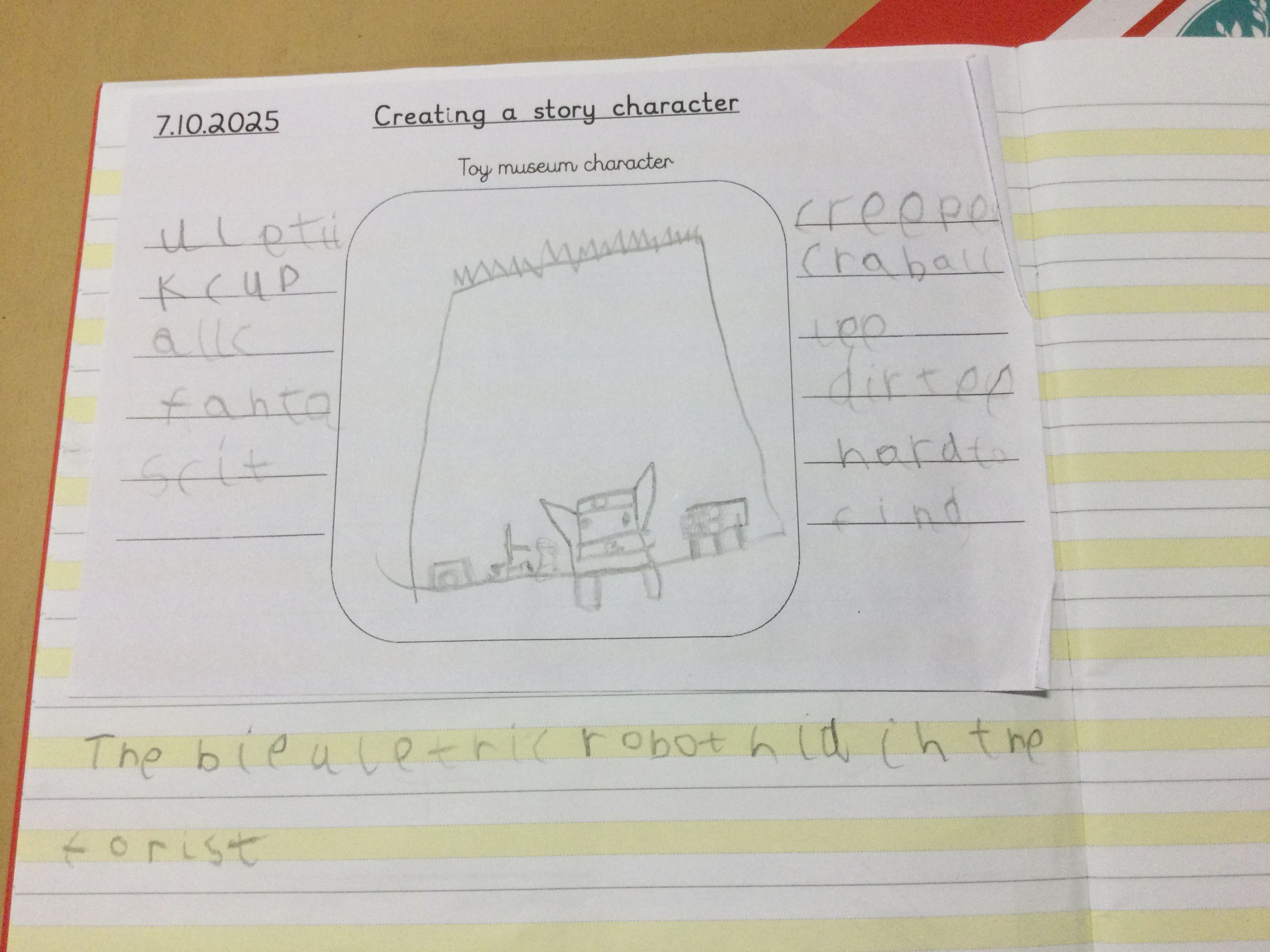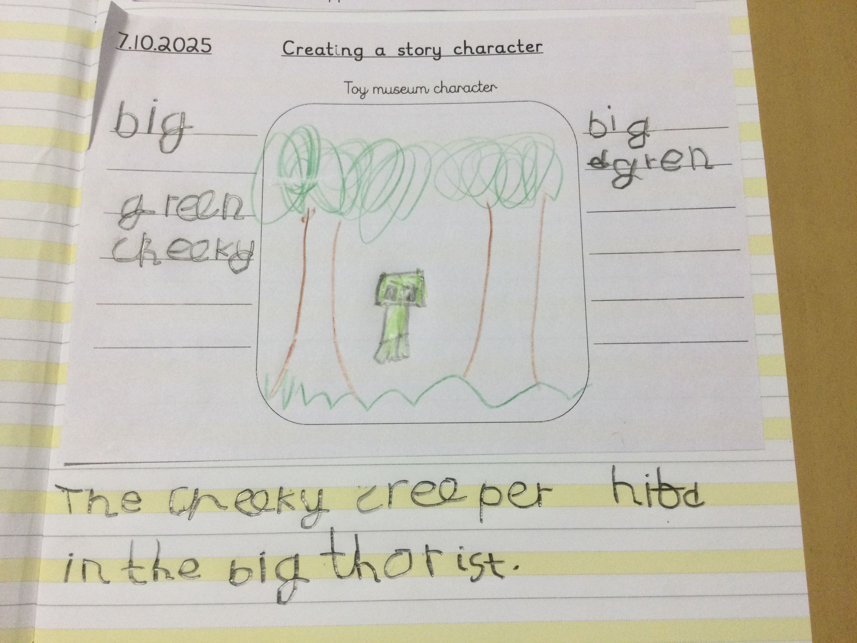 Robins have begun to create their own character for the story 'Lost in the Toy Museum'. We chose adjectives to suit the characters.