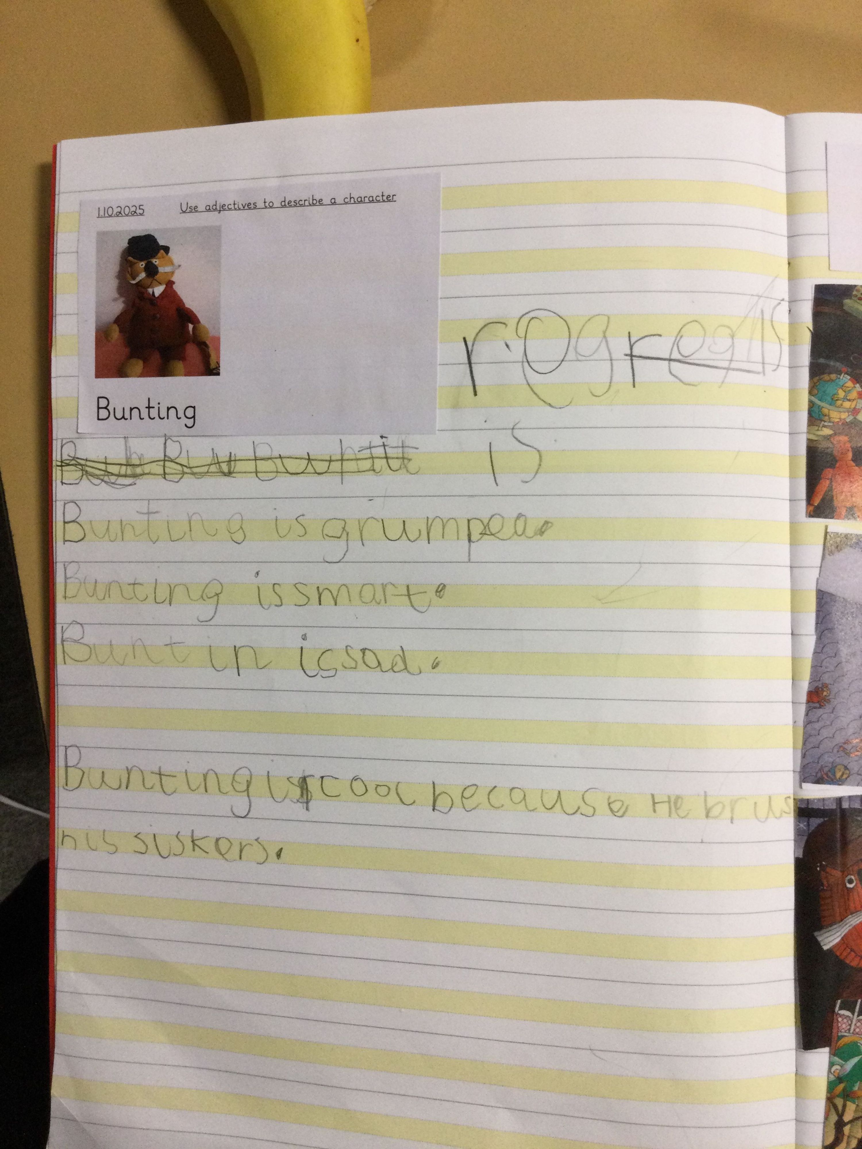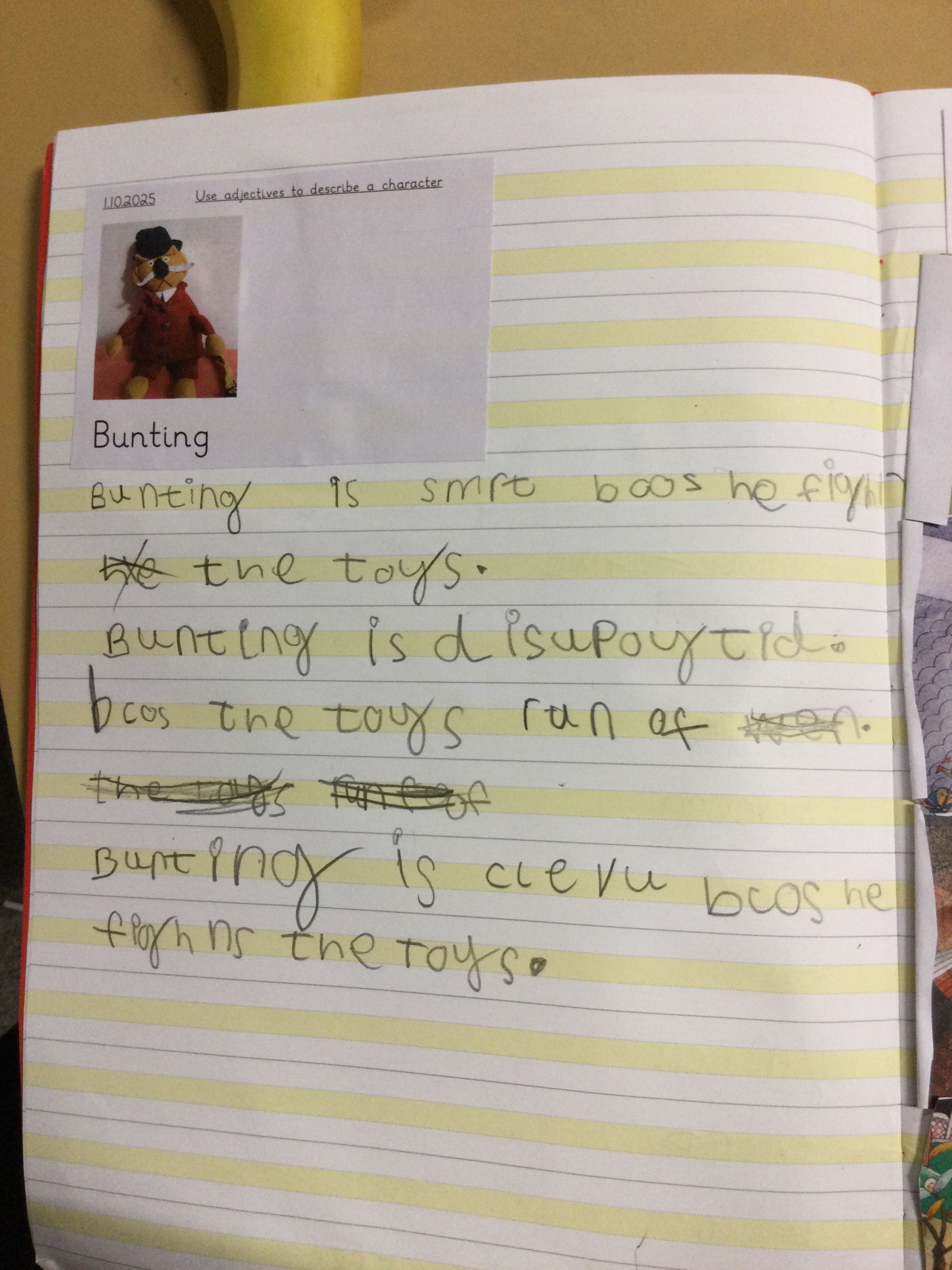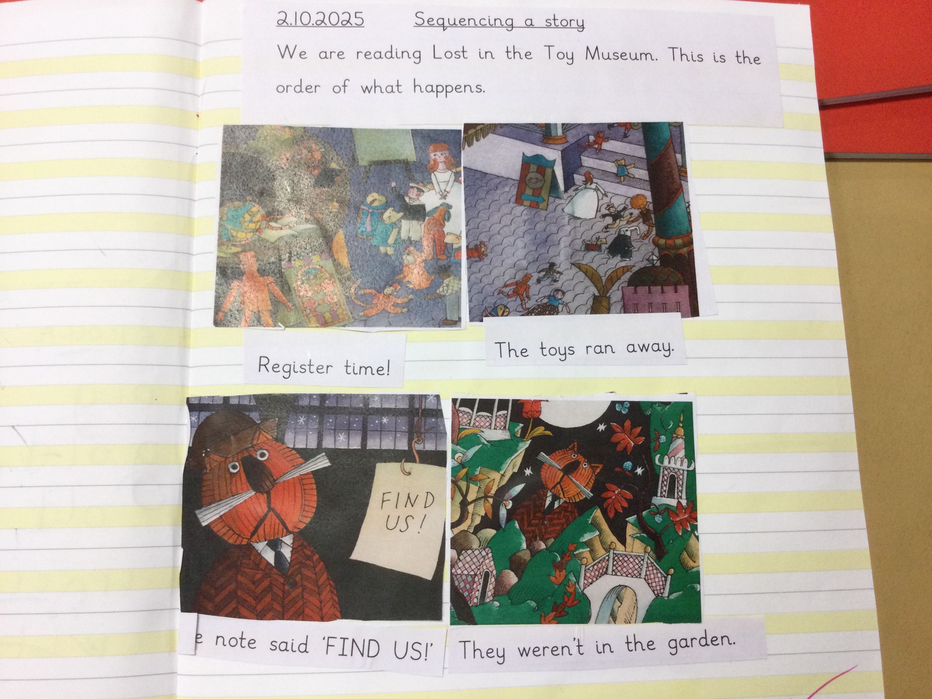We practised what we have learnt about adjectives by describing the character Bunting from our book 'Lost in the Toy Museum'. Then, we sequenced the story by putting pictures in the correct order.