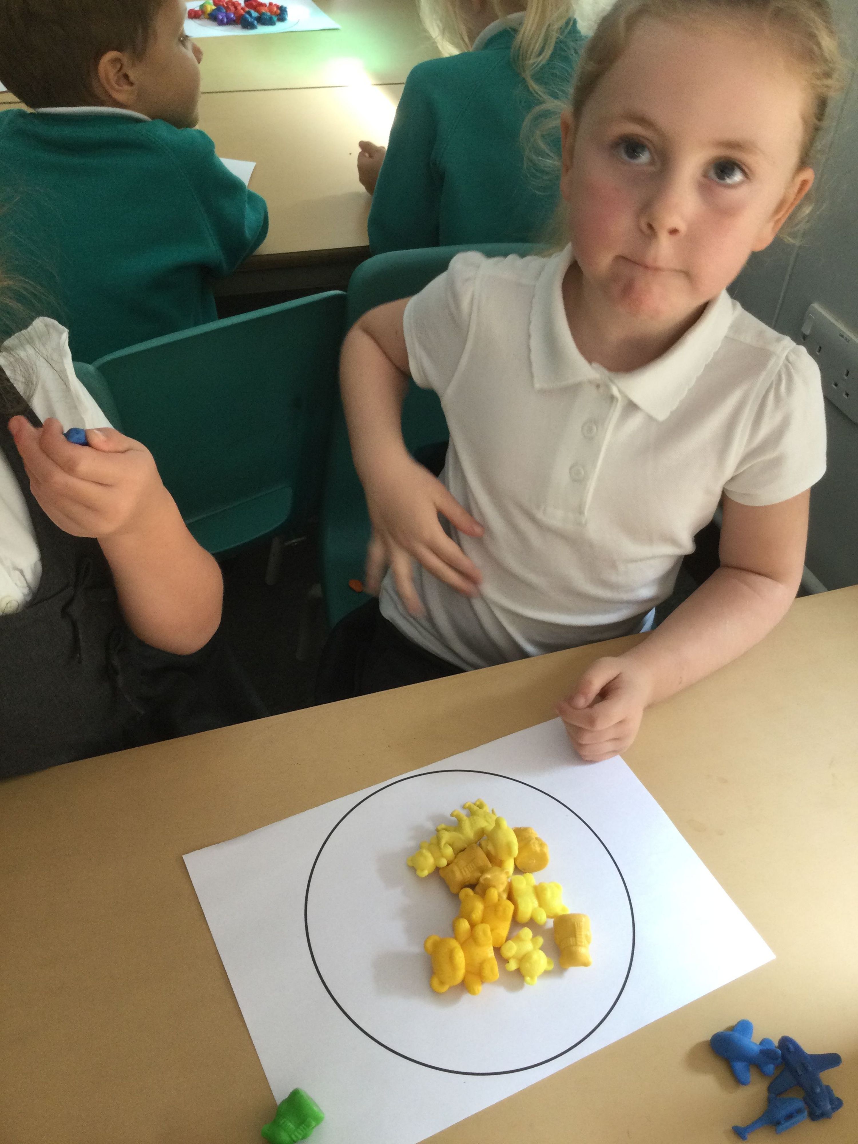 We continued to practice counting forward and backward to 100 this week. Also, we looked at different ways to sort items into sets.