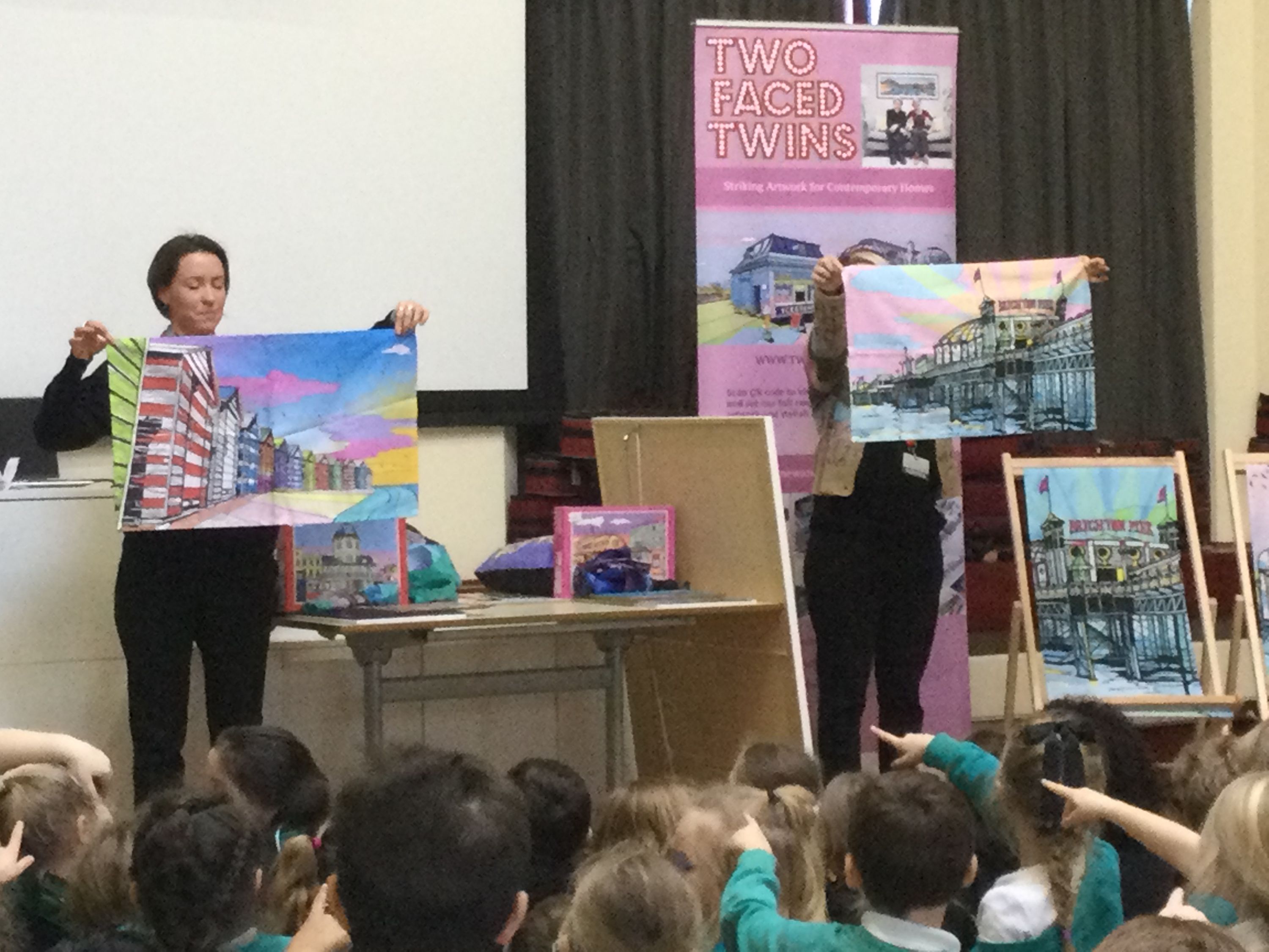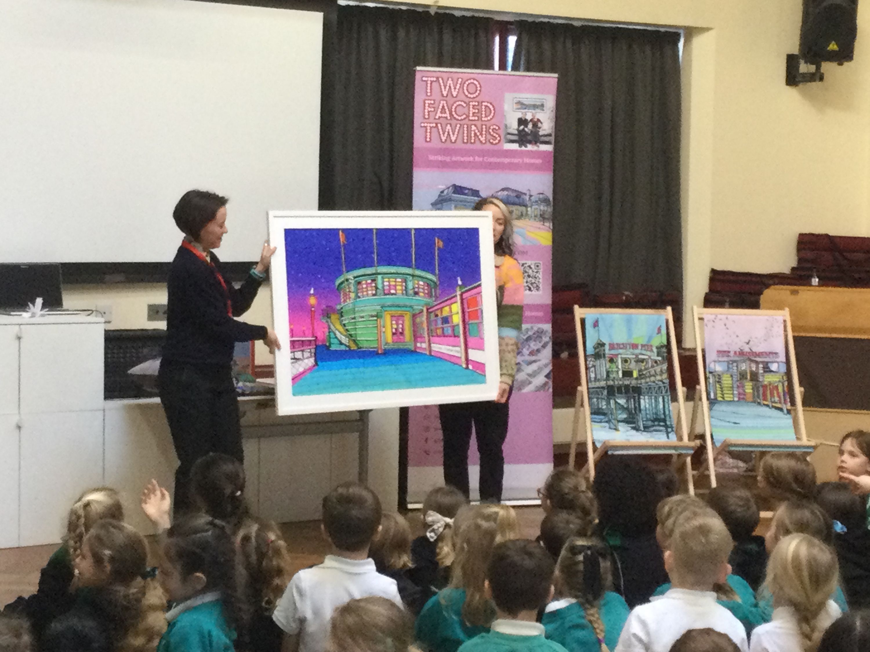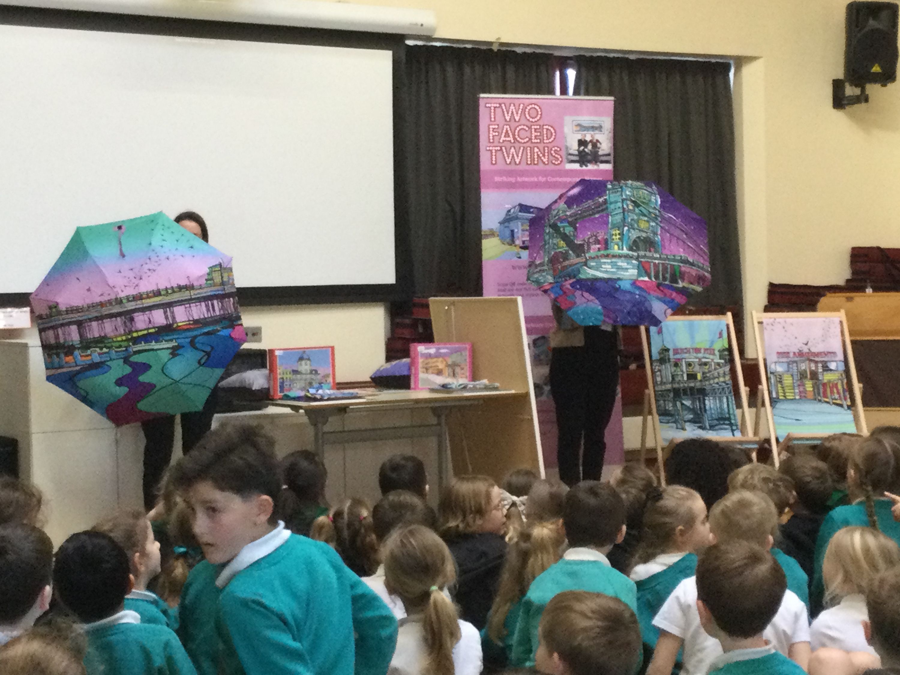 Today we had a very special assembly from the Two-Faced Twins. The children were excited to see them in person, as we will be studying these local artists as part of our Sunny Worthing topic, in the Summer Term.