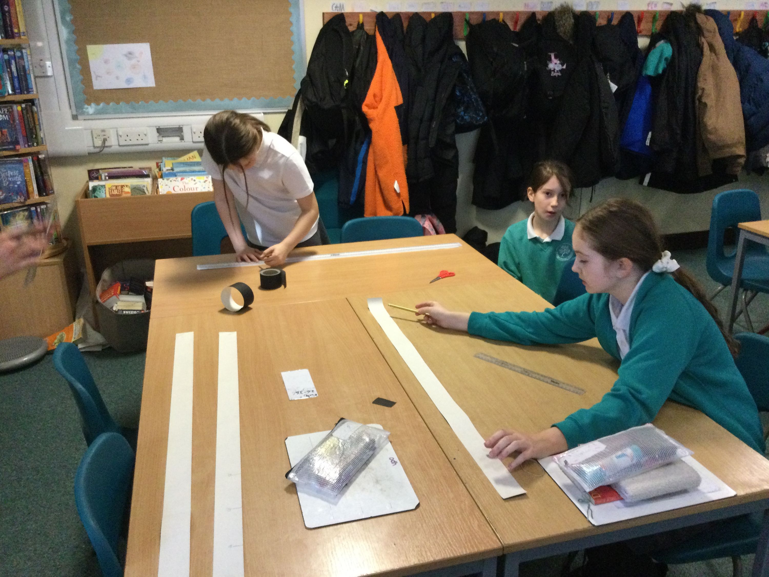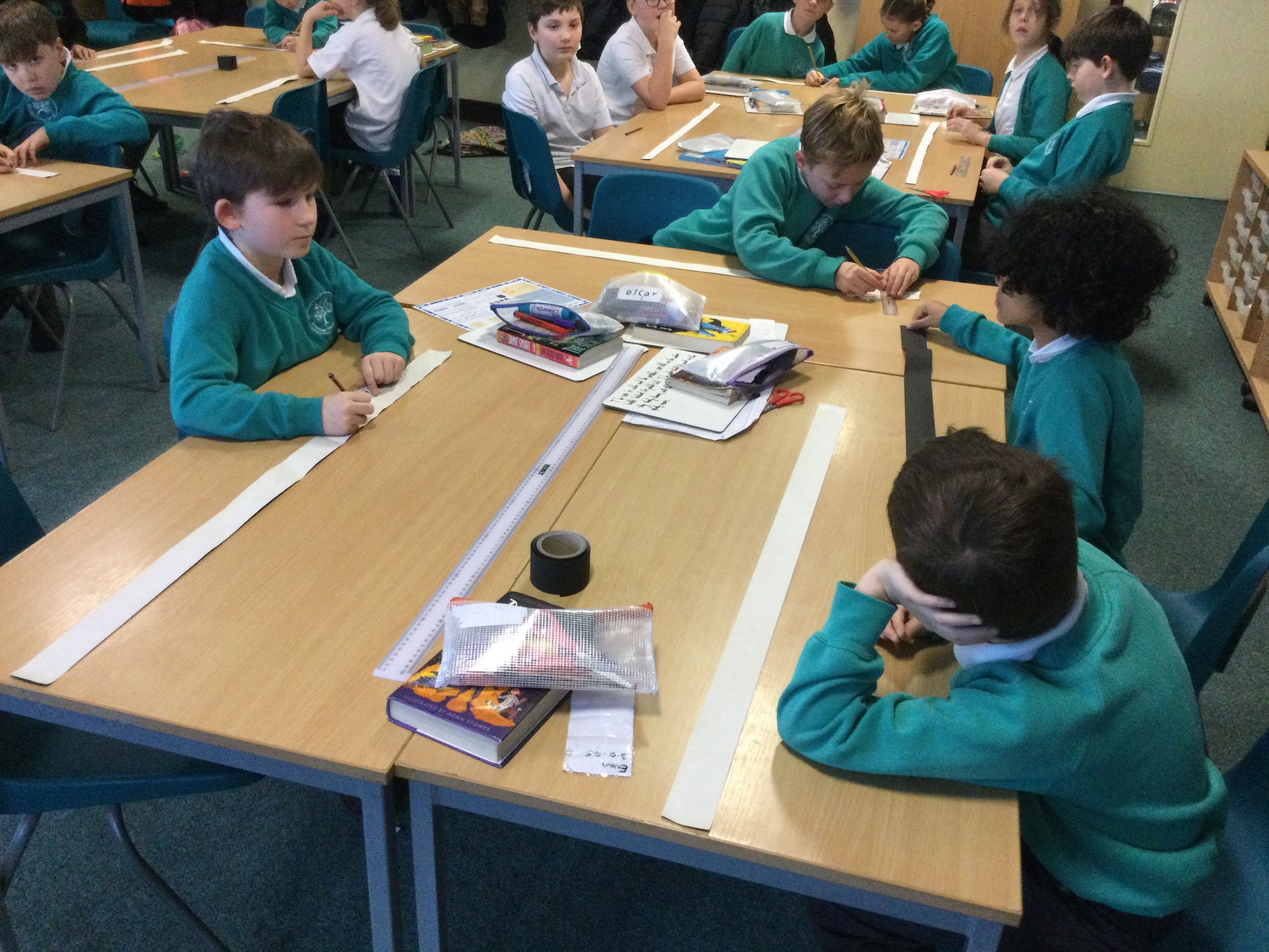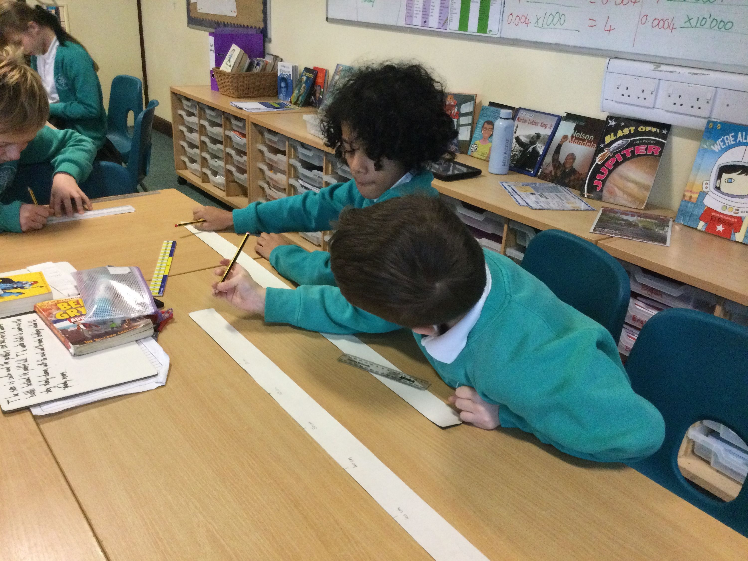 Making metre sticks to help us calculate decimal fractions.