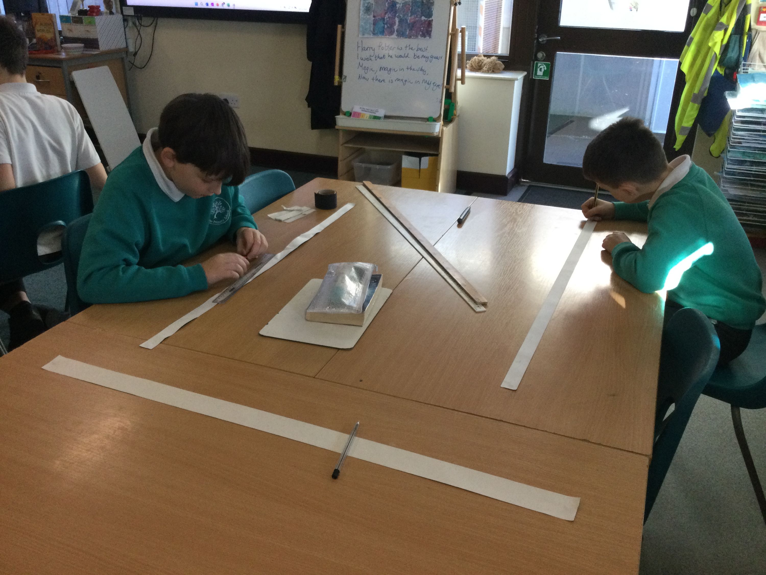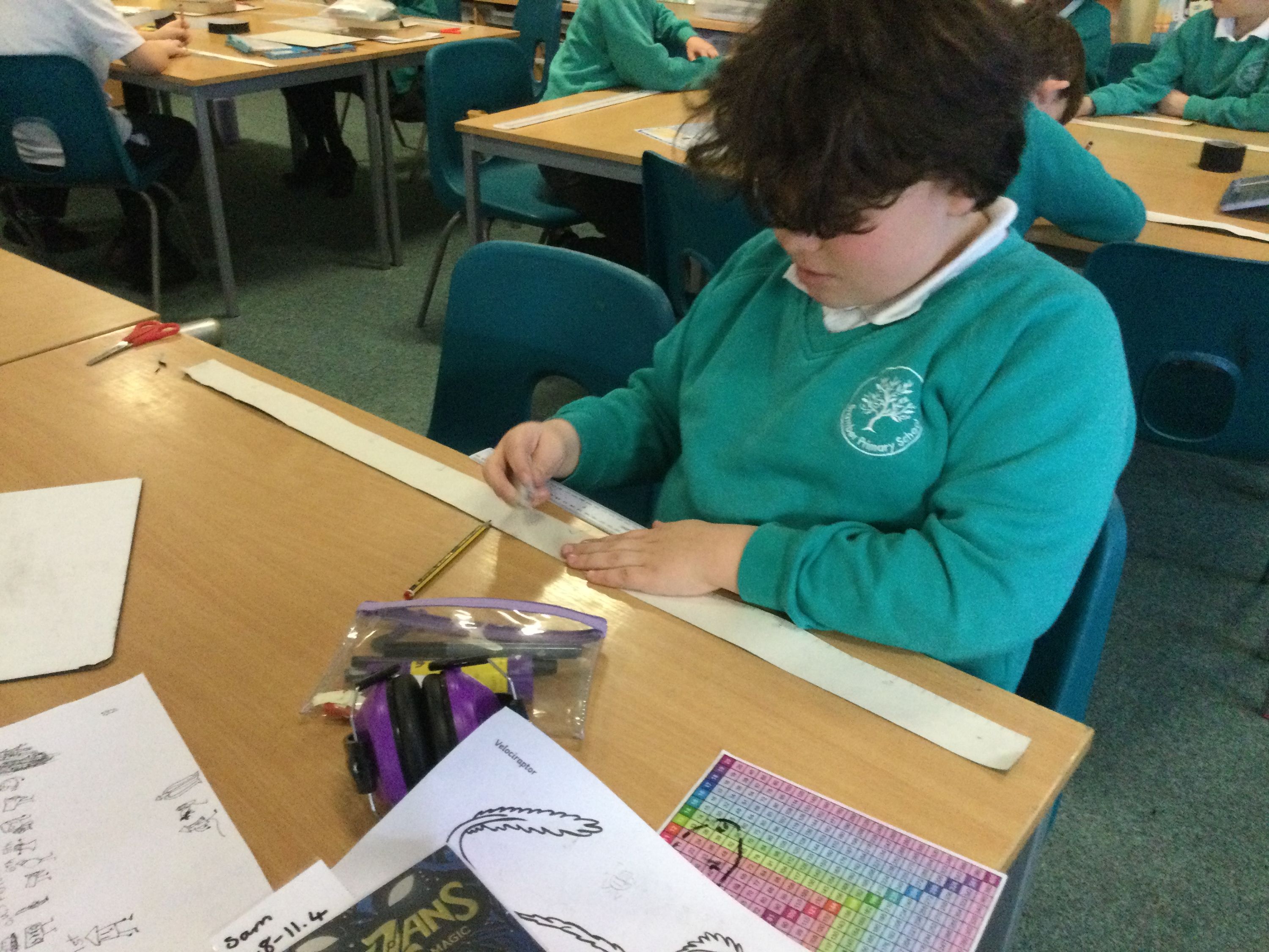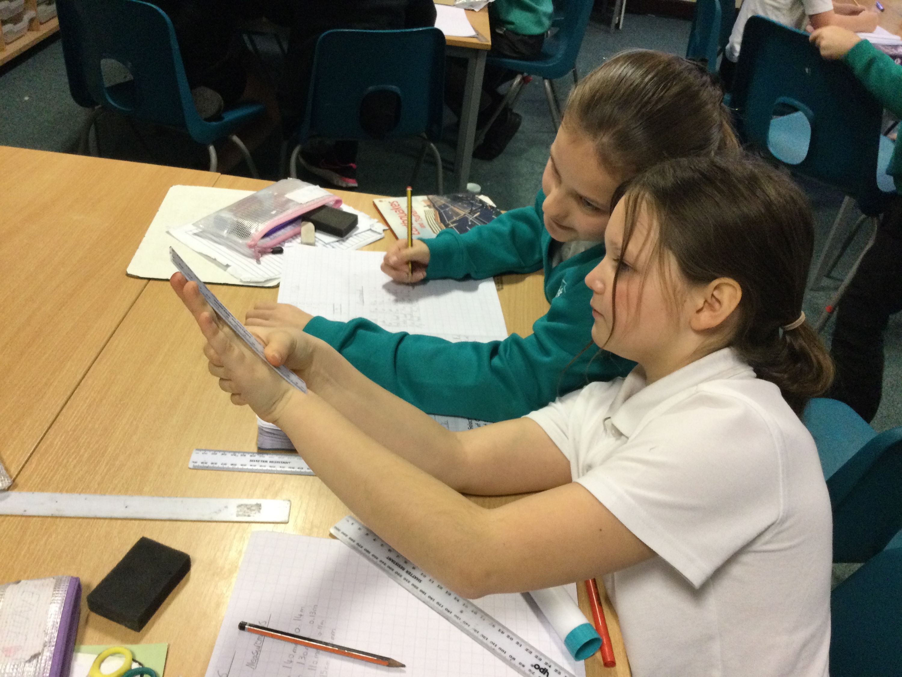 Making metre sticks to help us calculate decimal fractions.