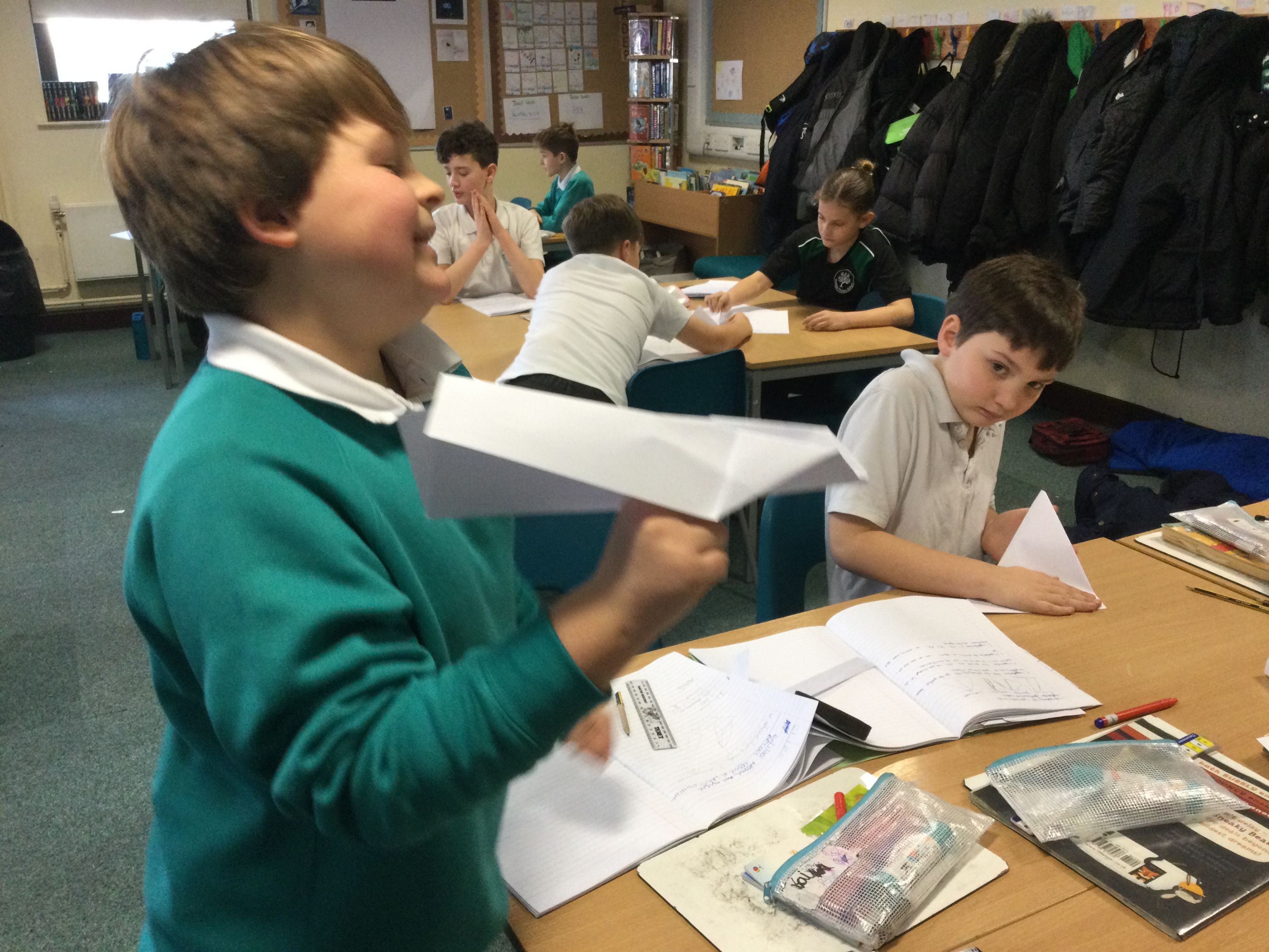 Exploring upthrust, gravity and air resistance in science - using paper aeroplanes.