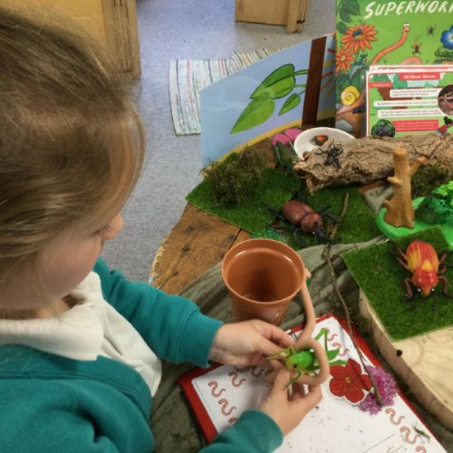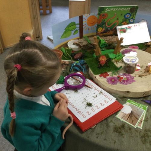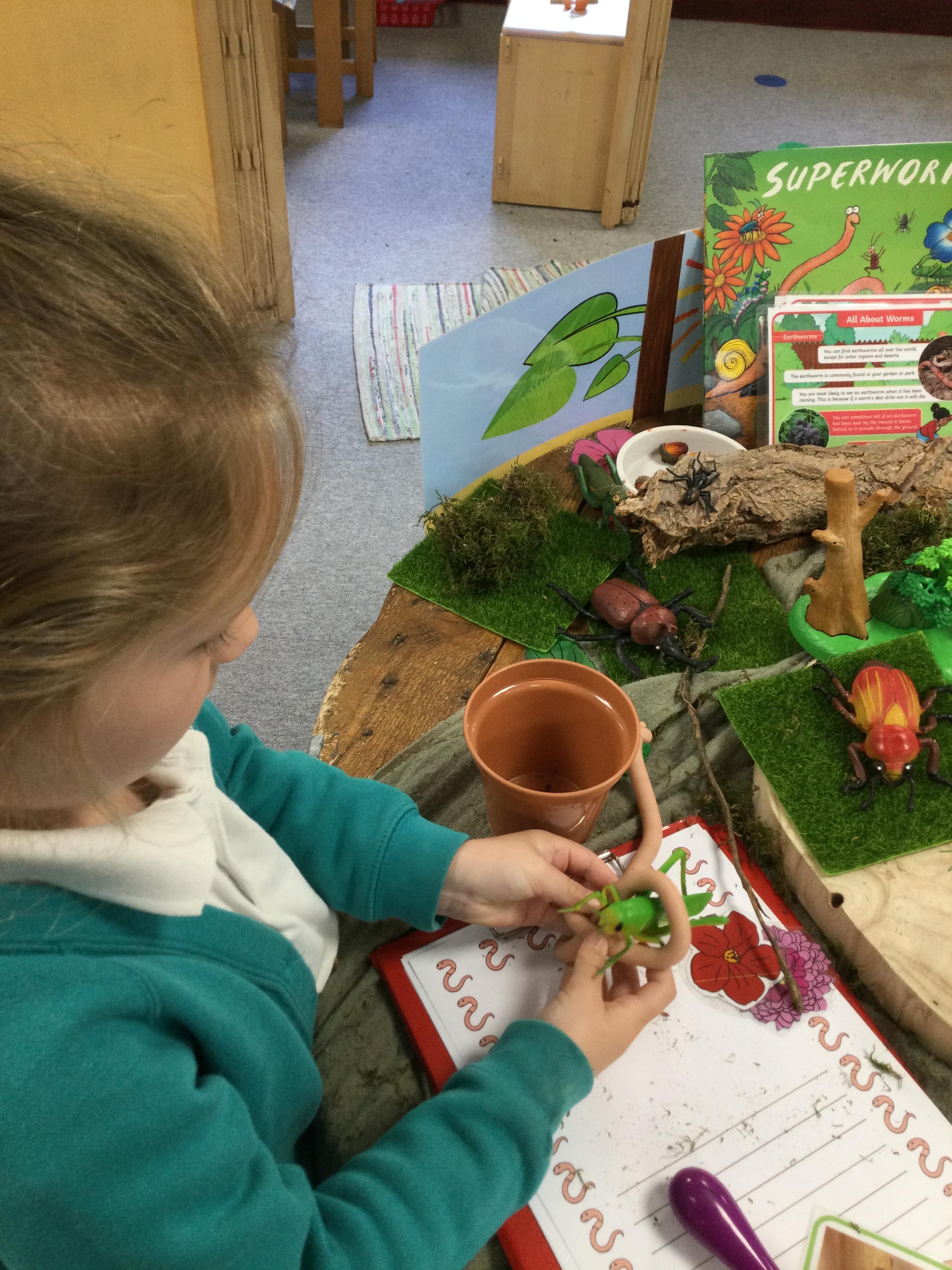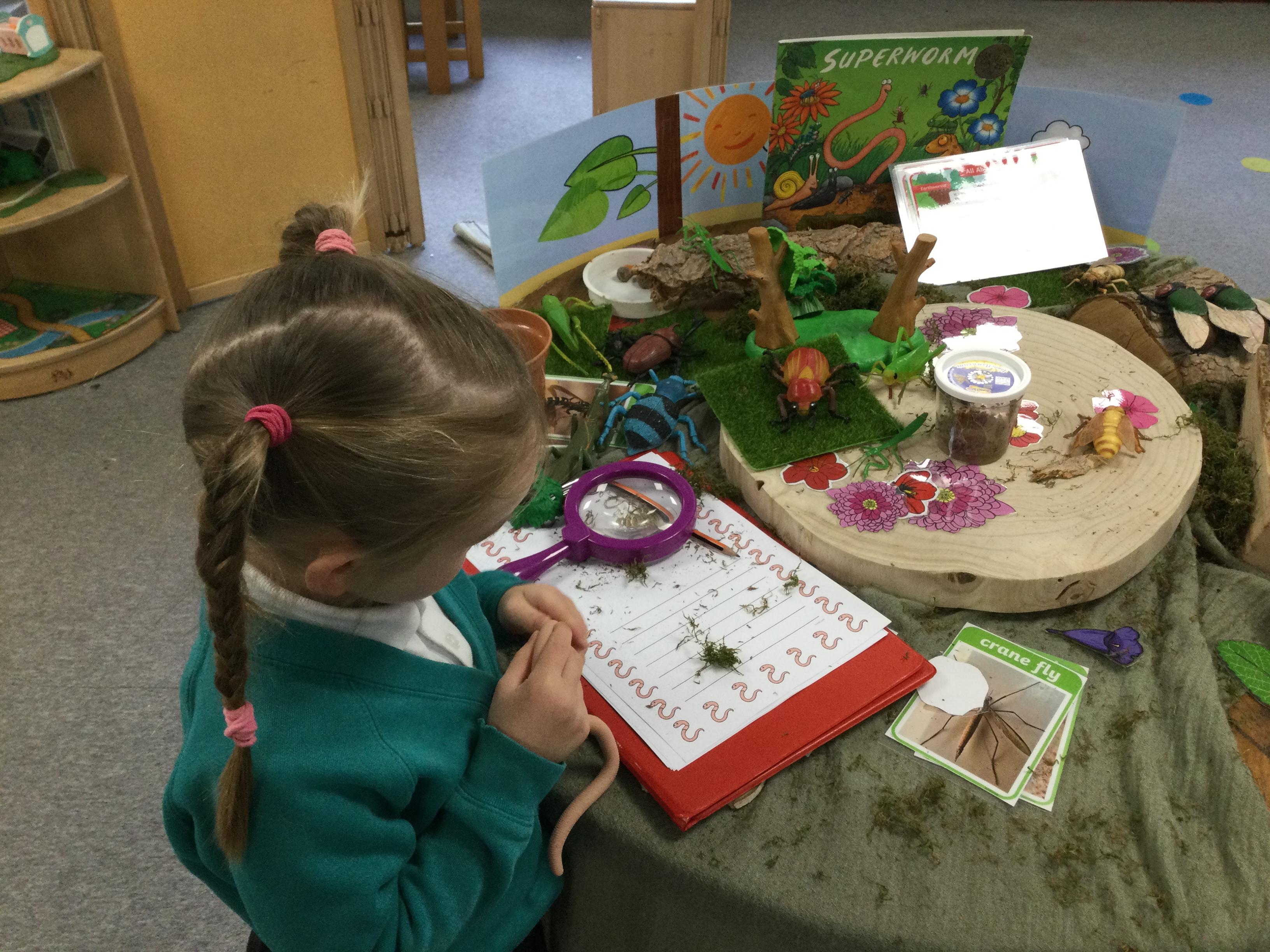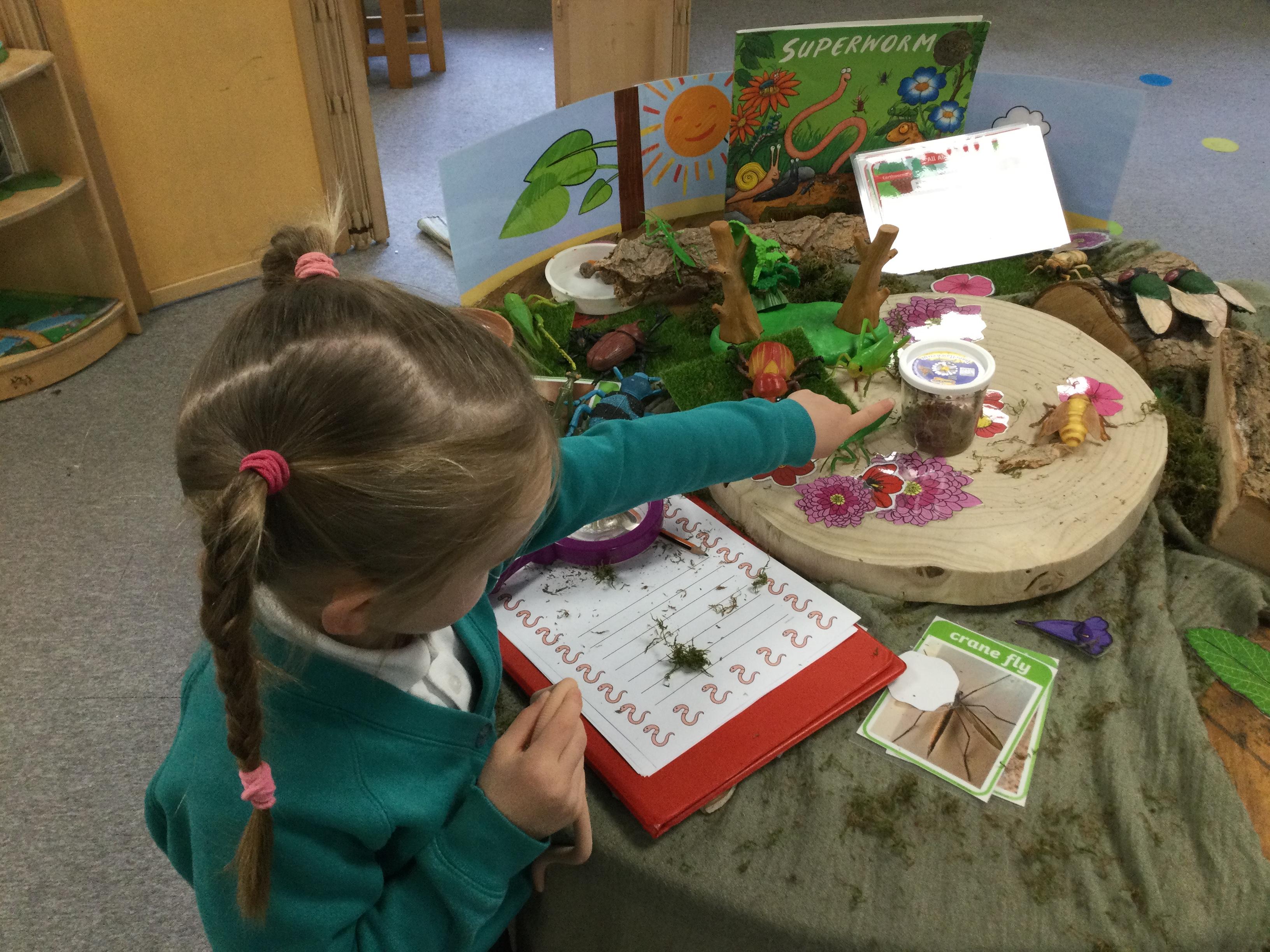 As part of our minibeast topic we having been reading the text ‘Superworm’ by Julia Donaldson this week. The children have been talking about key characters and events in the story when creating a class story map. This has informed our writing and role play.