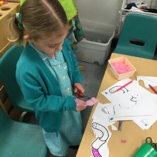 Duckling class have really enjoyed exploring the learning environment and have engaged in lots of Superworm themed activities. The children have used their phonic knowledge to write facts about worms, they have created earthworm collages using various materials and exploring shades of pink. They have even been acting out parts of the story using our stretchy Superworm.