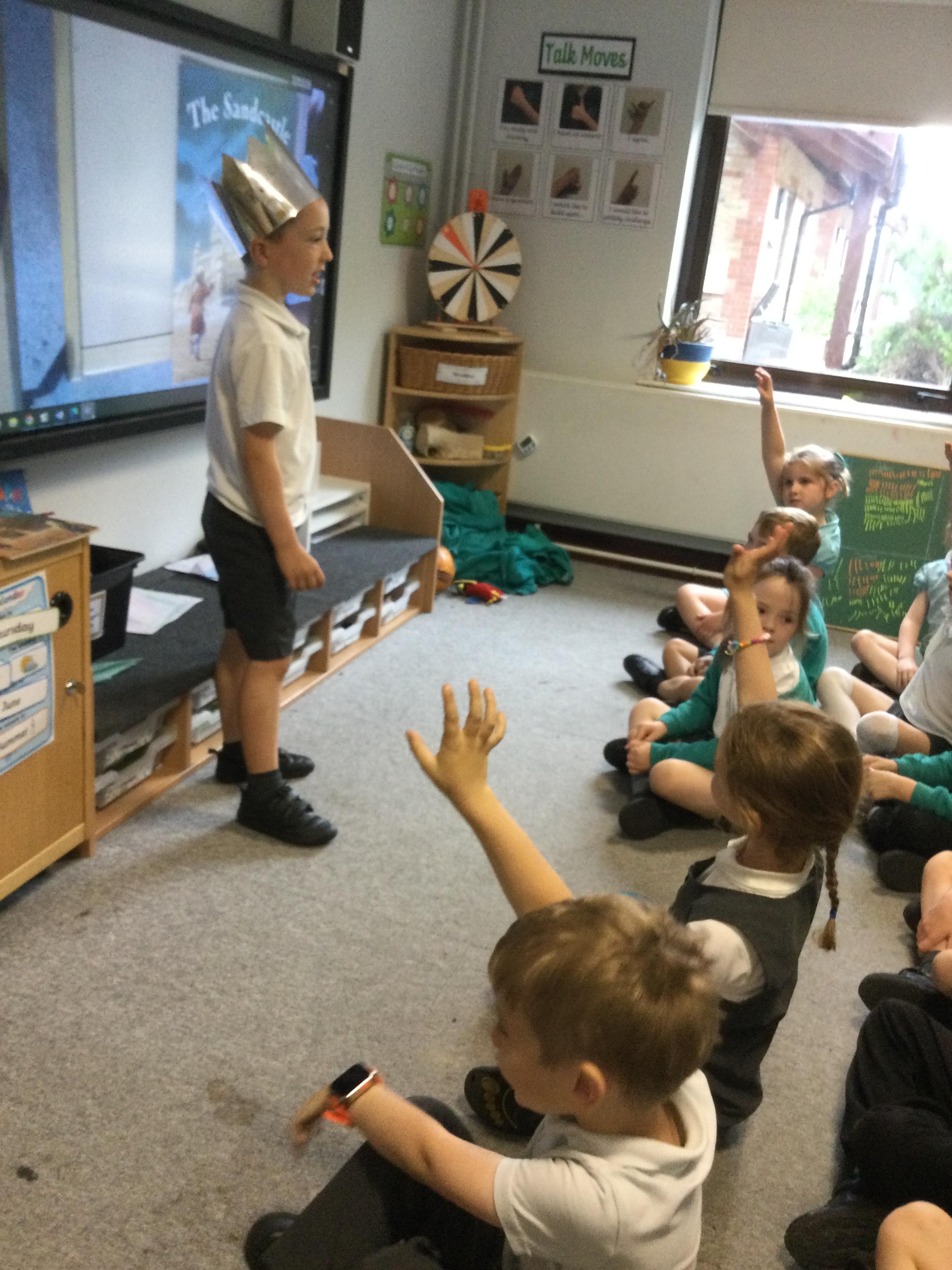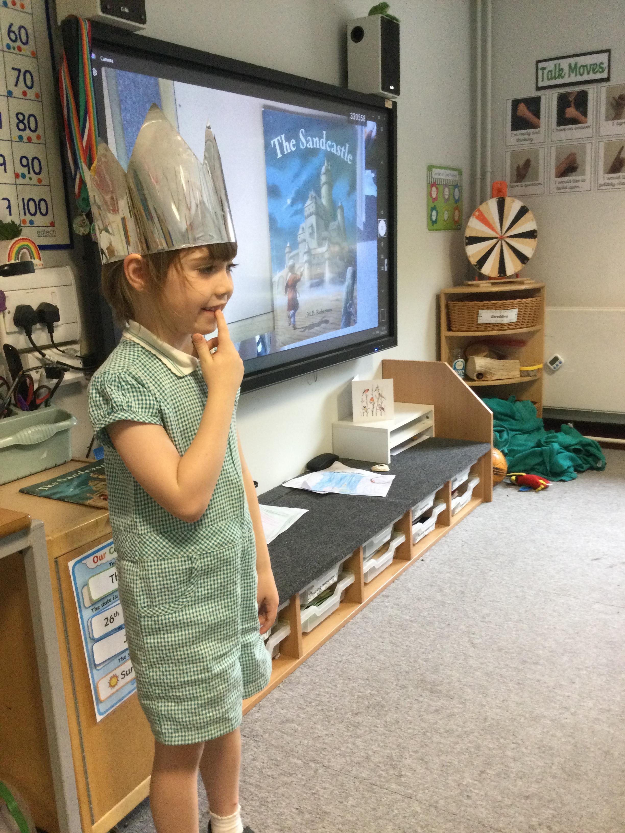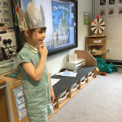 In English, we have been reading 'The Sandcastle' by M P Robertson. This week the children interviewed 'King Jack' to ask him how he felt about his wishes coming true. They then worked in groups to build their own castles and described what they made.