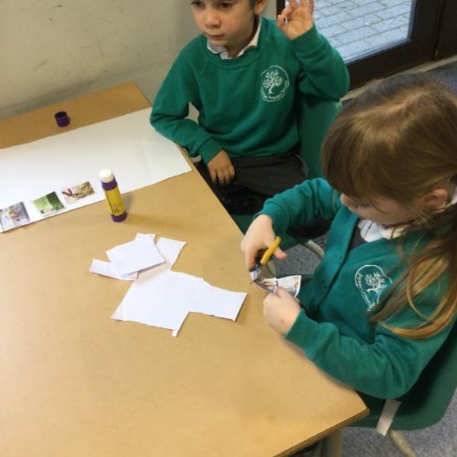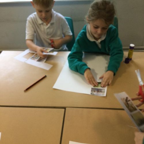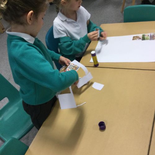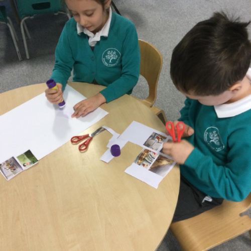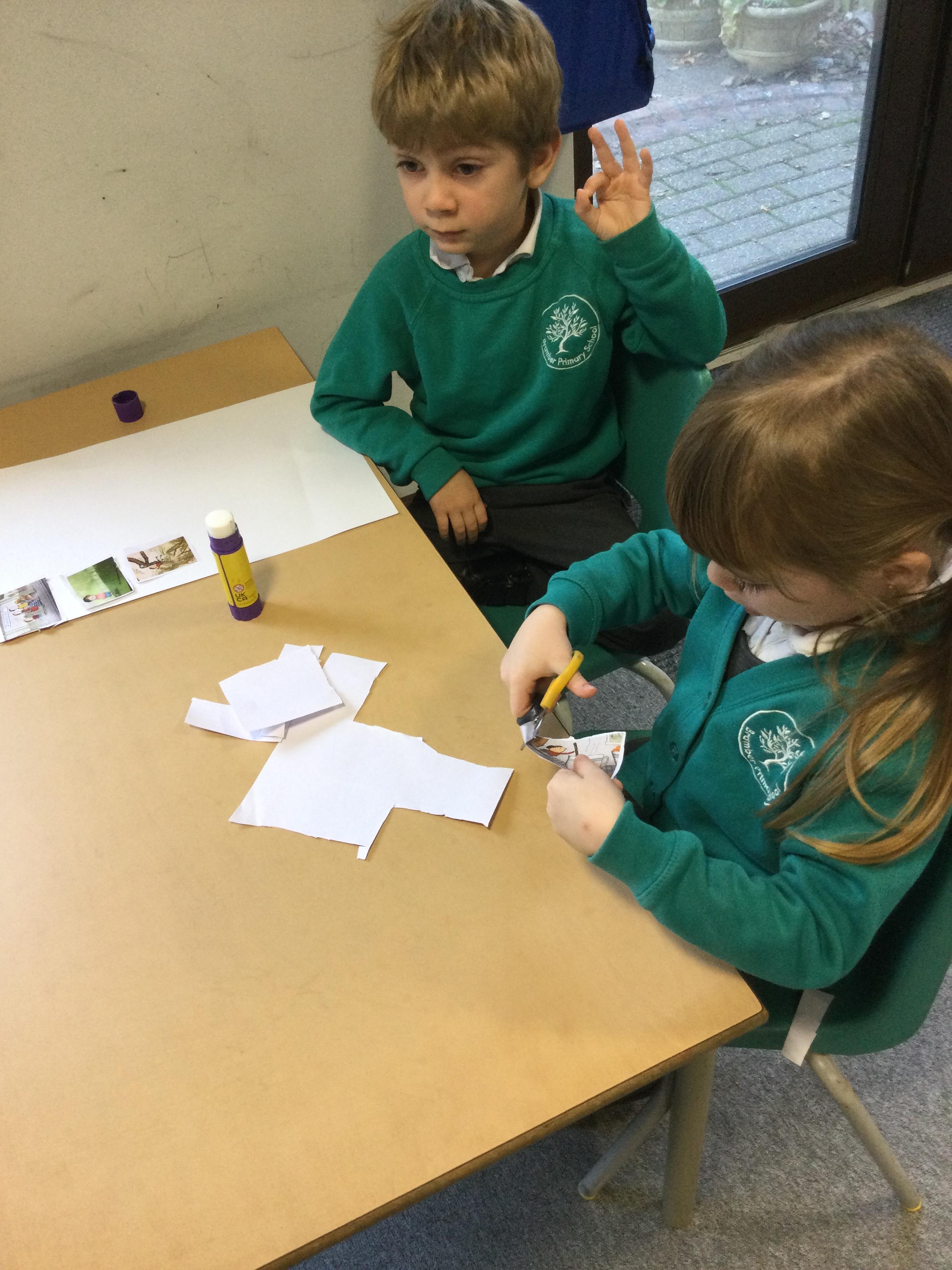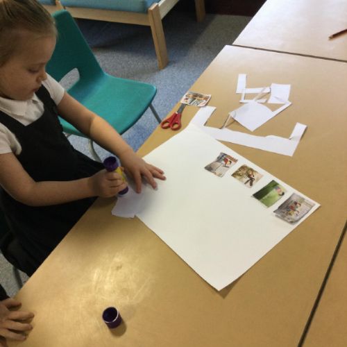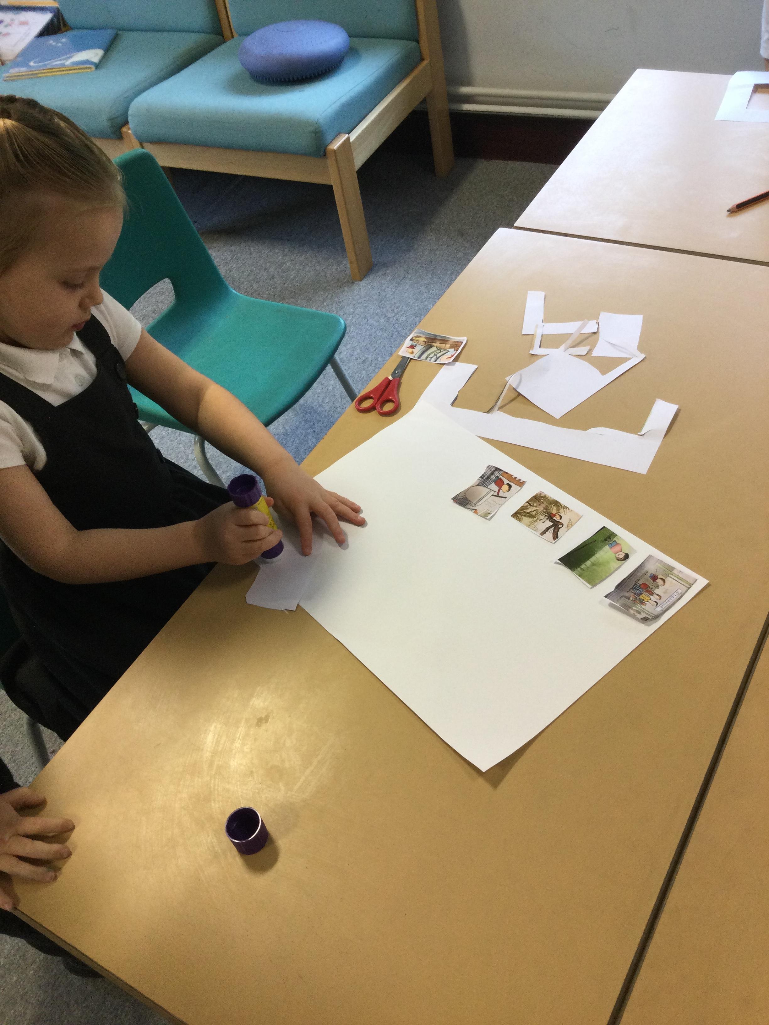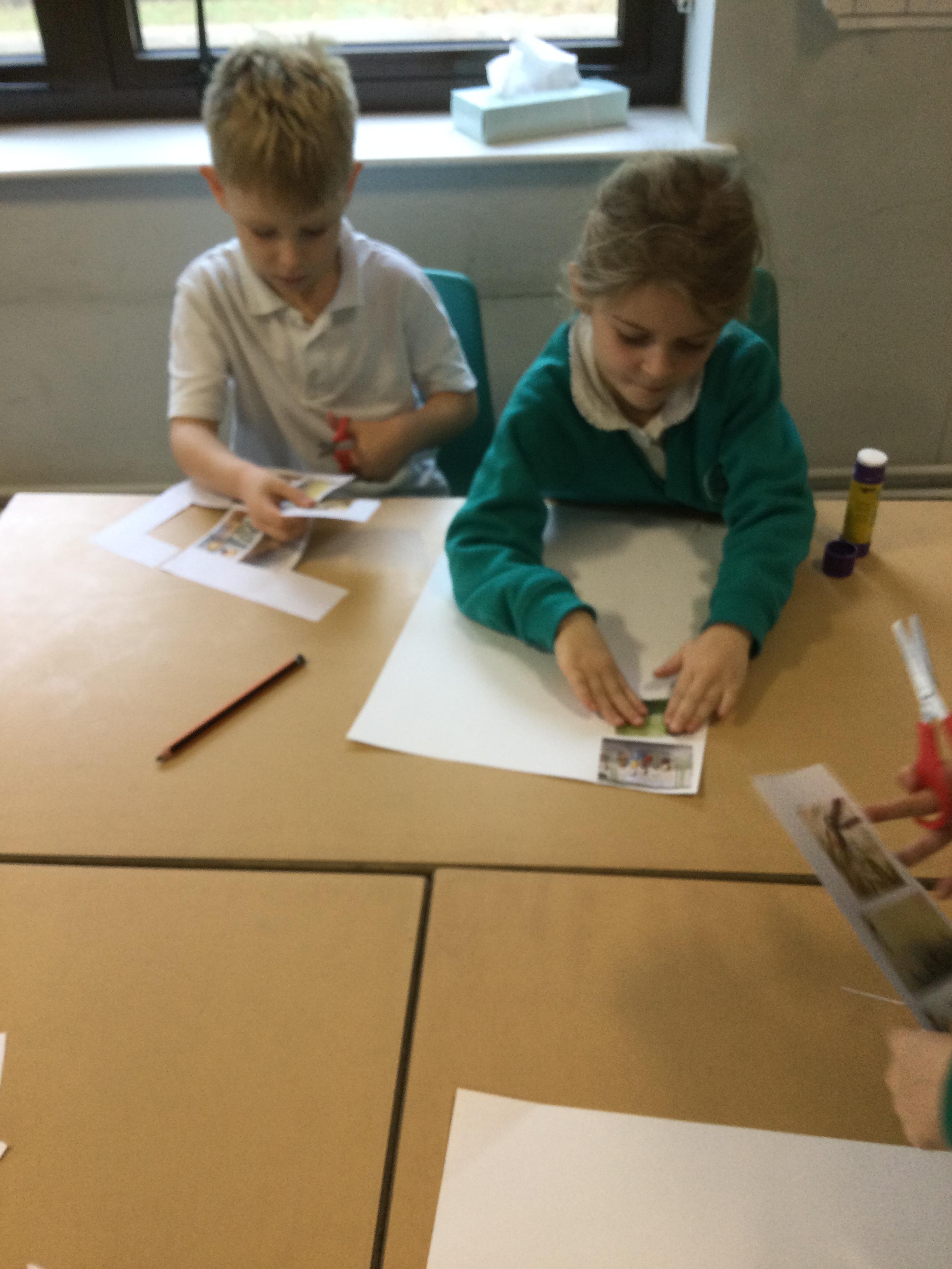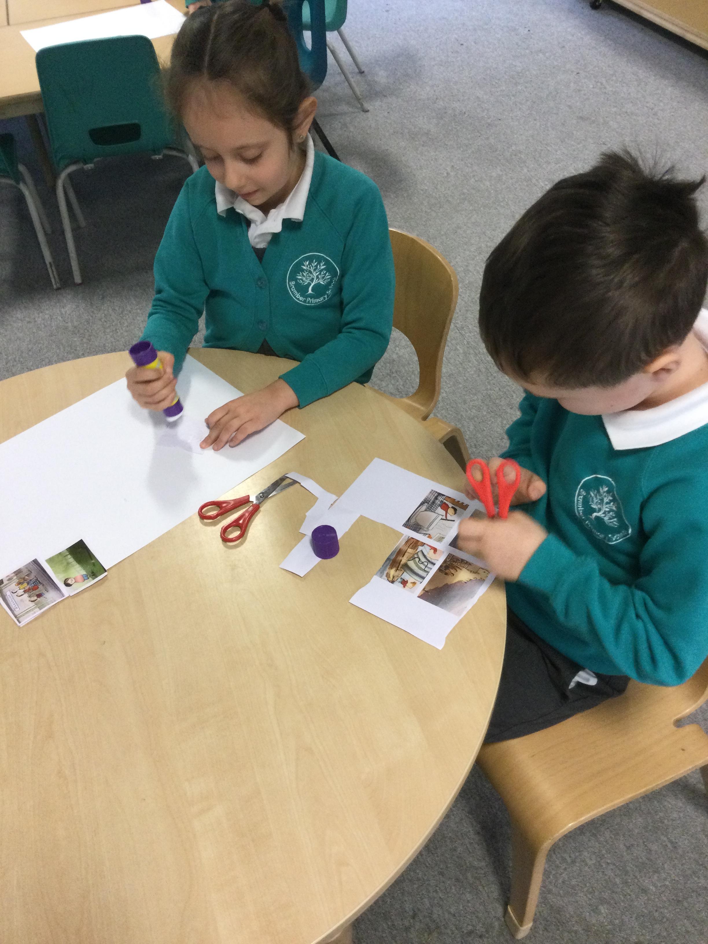 The children then worked in pairs to put the pictures from the story in order and write key words.